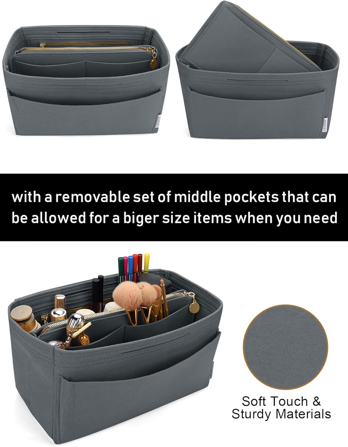 - BETTER PROTECT:Felt Purse Organizer with High quality and New Materials are made of Sturdy ,Soft and pliable, Lightweight Felt fabric makes your purse a better protect.The Zipper of the organizer are made of Metal, Durable, Fashion and smoother sturdy and keeps your bag shape and shipshape.