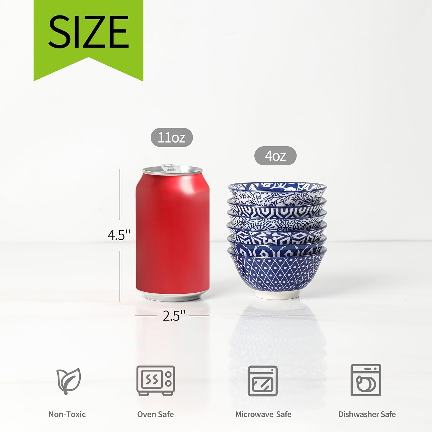 Selamica Ceramic Mini Bowl Set, 4 oz Dipping Bowls for Snack Side Dishes Condiment, Set of 6, Vintage Blue