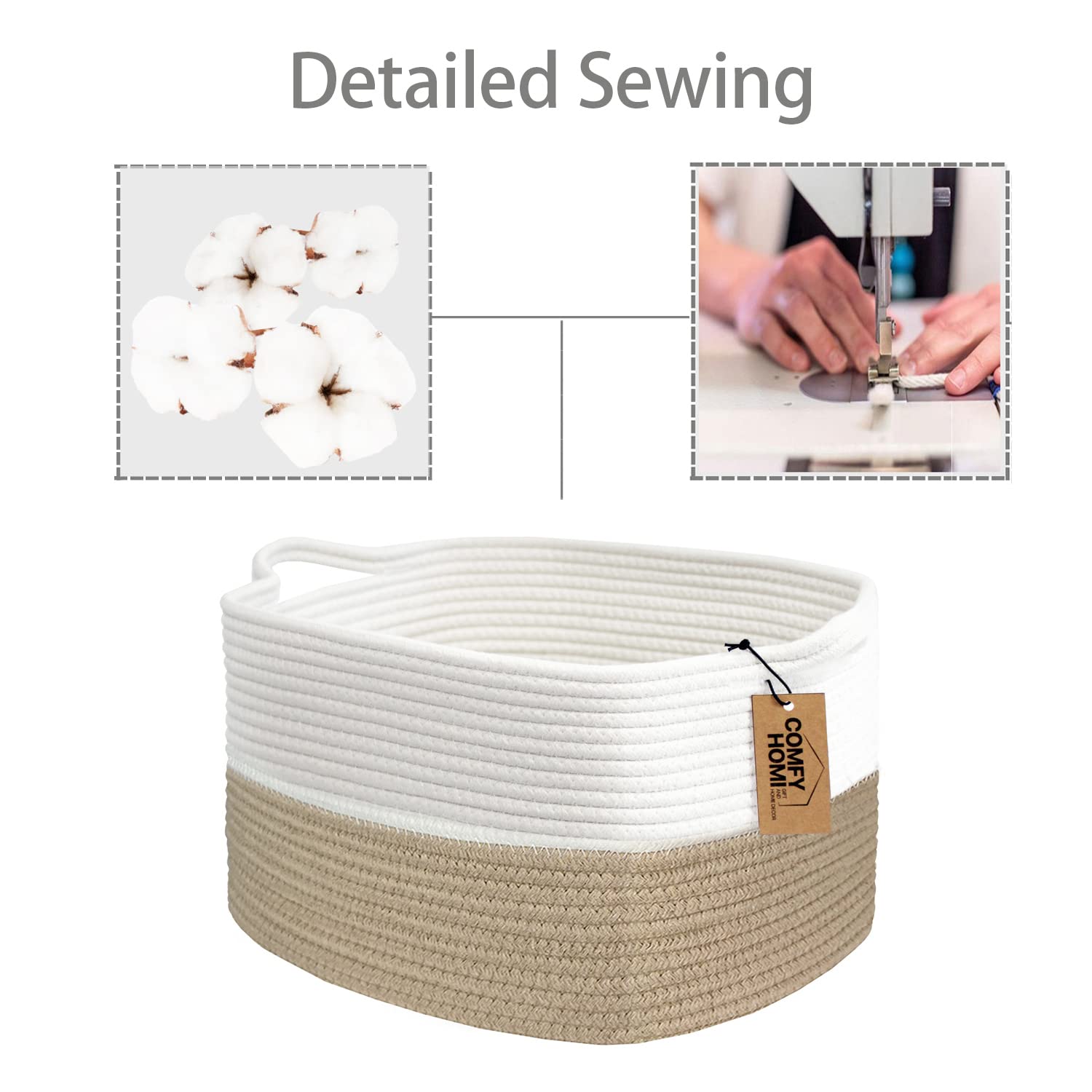 COMFY-HOMI Cotton Rope Woven Basket with Handles for Shelves,Toys,Book, Cloth Storage Baskets Bin for Organizing-13.5"x11"x9.5" Toy Decorative Organizer for Living Room, Bathroom-Light Brown