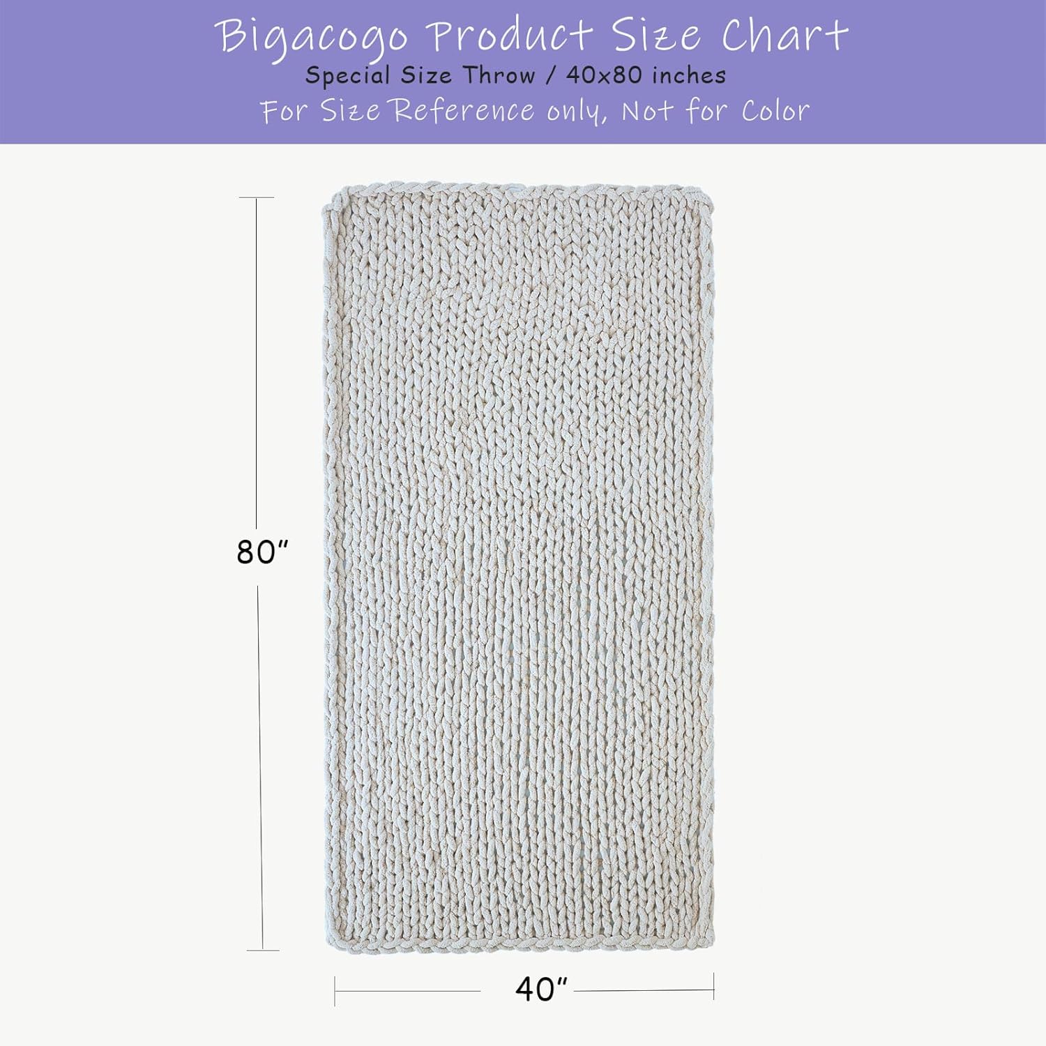 Bigacogo Chunky Knit Throw Blanket for Couch, 40x80 inches, 100% Hand Knitted with Thick Jumbo Chenille Yarn, Cozy Soft Large Rope Knot Cable Crochet Blankets for Sofa Bed Living Room, Ivory