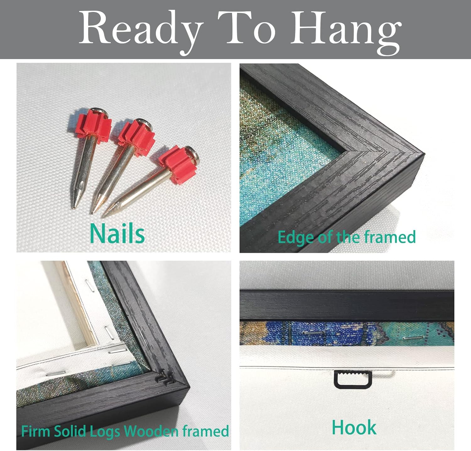 - Modern wall art: the canvas and wooden frame are already assembled, there are hooks in the package, you just need to choose the right position to install it.