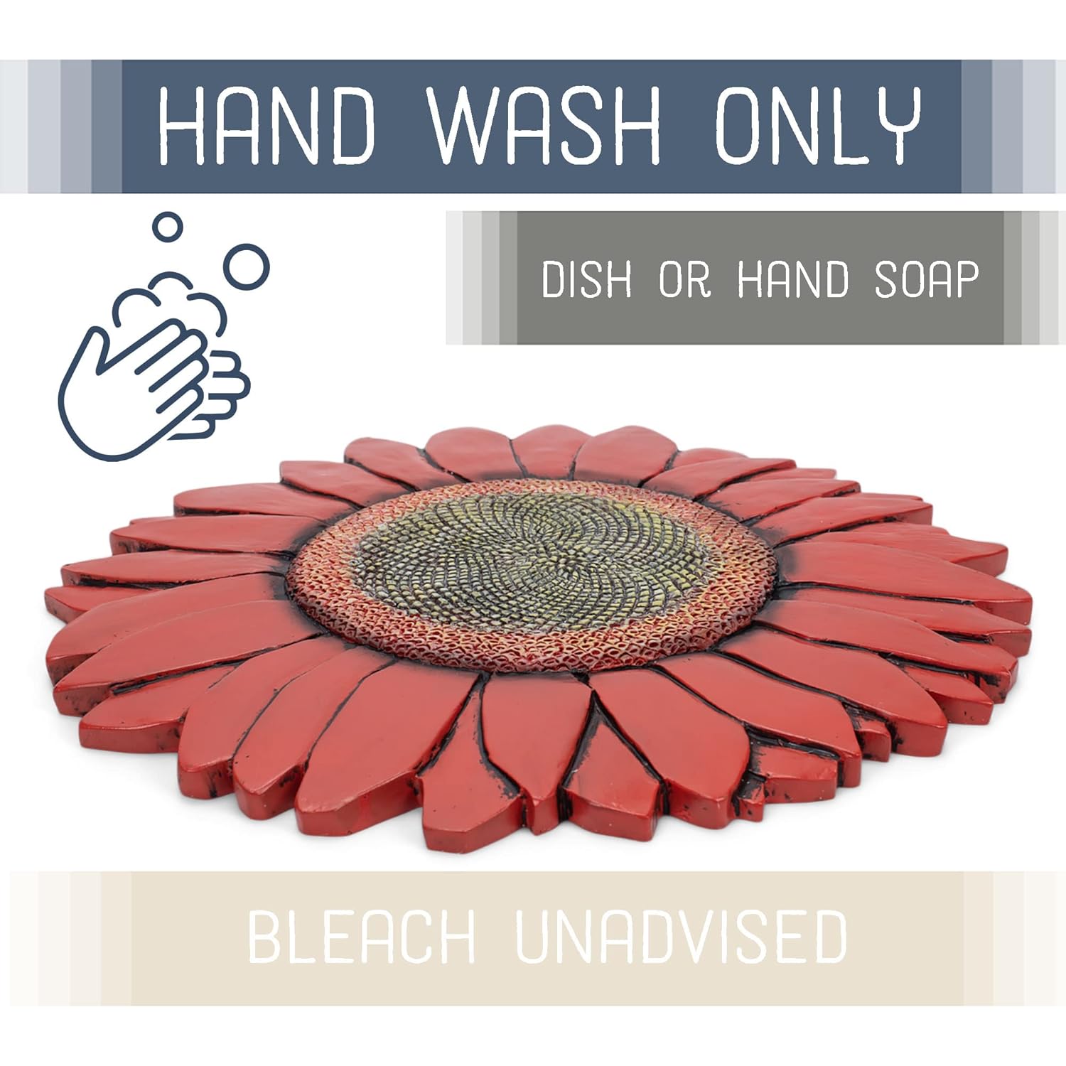NAT & Jules Sunflower Shaped Dimensional Indoor Outdoor 12 inch Cast Resin Decorative Garden Stepping Stone, Patio, Walkway Sculpture Yard Art, Red