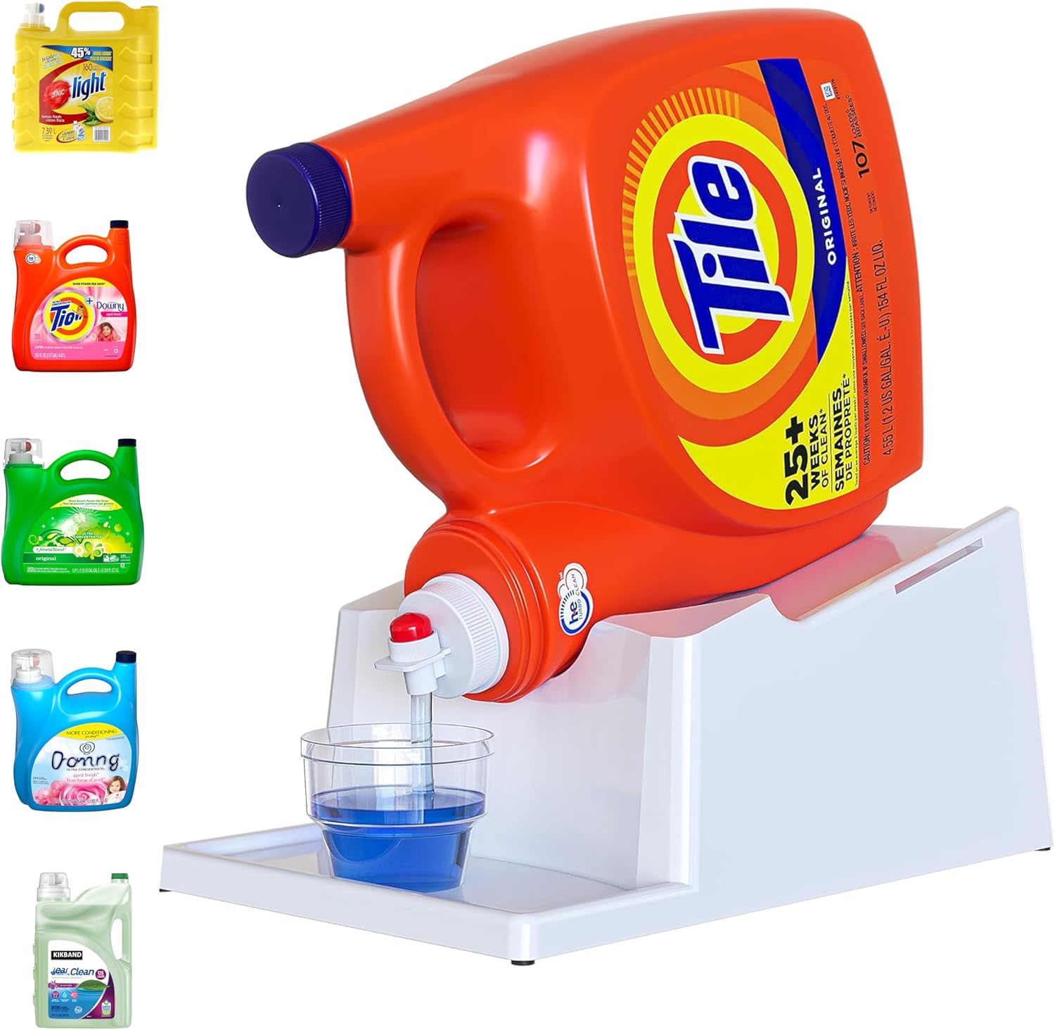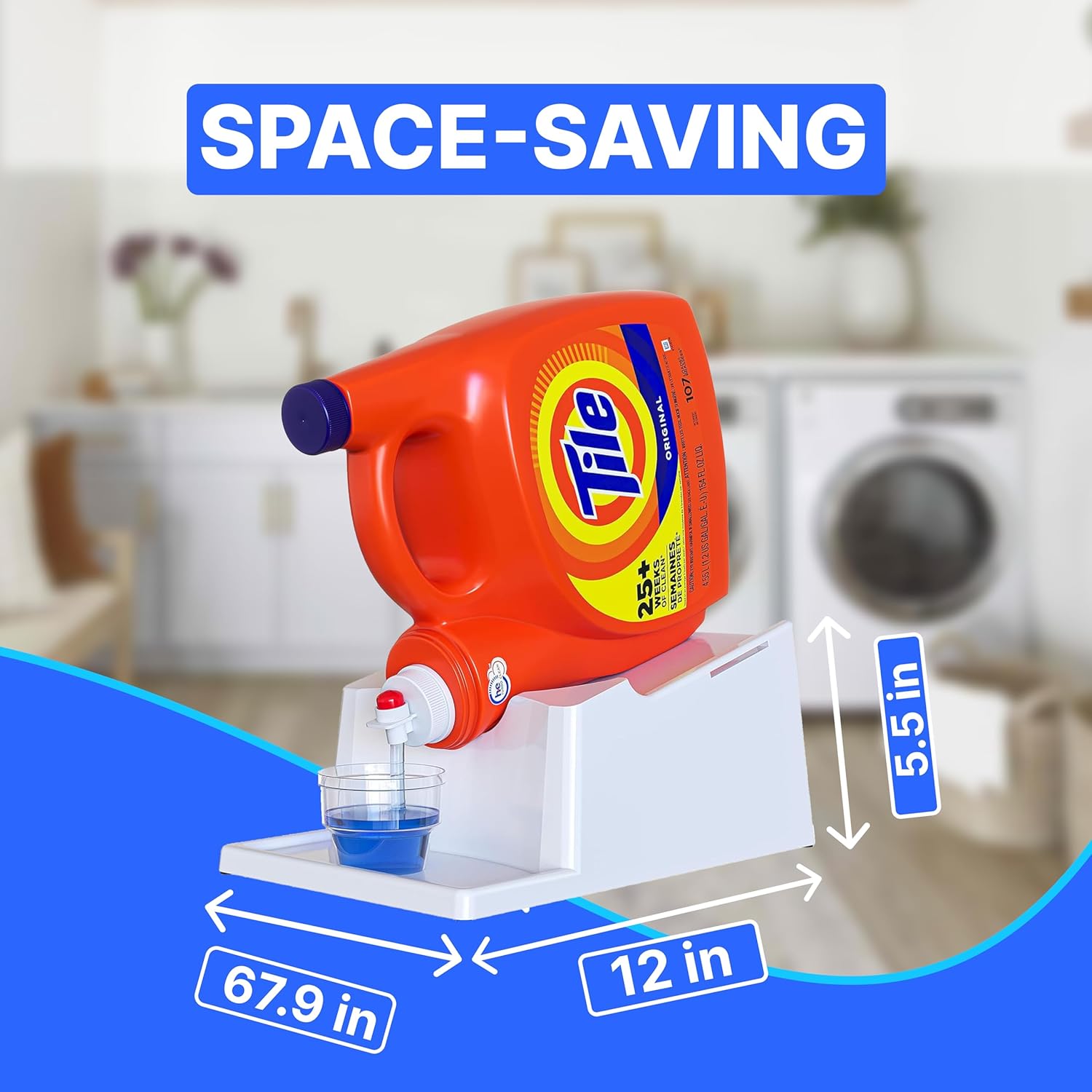 - [USES] - This Laundry Soap Detergent Holder will help you to pour out the detergent easier without using much effort to lift and carry the heavy containers of your favorite detergent or fabric conditioner. You can put this on top of your washing, or on your cabinets