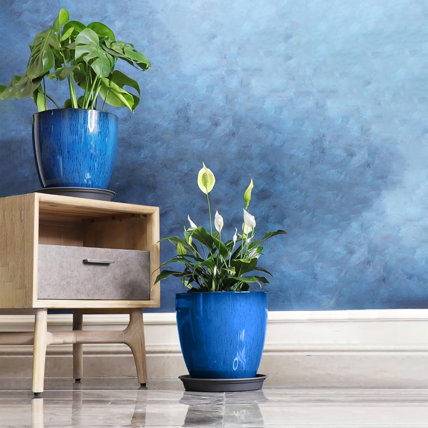 - 【Hand Glazed Fine Workmanship】Hand painted glaze, lovely rich blue color. 【Product Video】Video Instructions link: youtu.be/SRVswXbeBYM. You can also search inches15580 resin plastic planter faux ceramic fixturedisplays inches on youtube to locate the video.