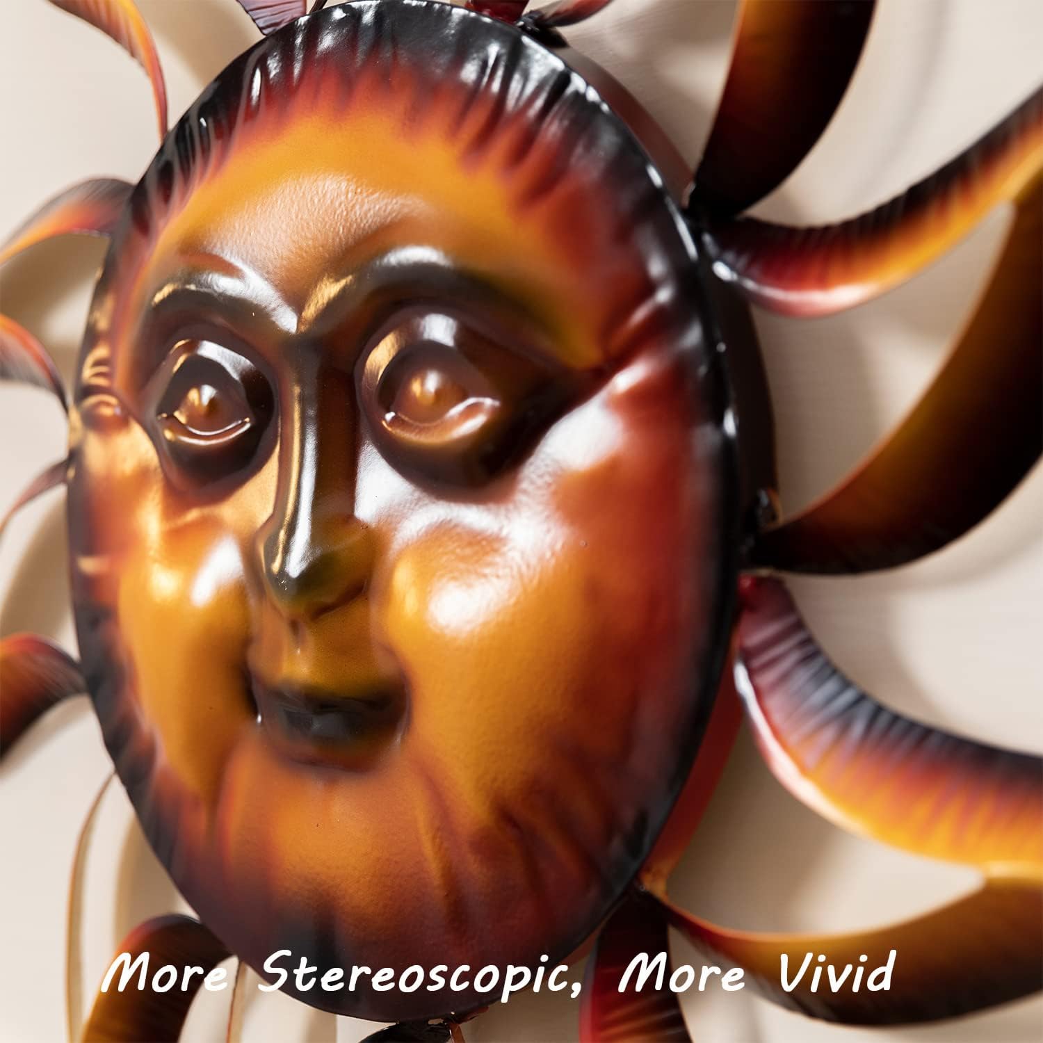 - [Sun Metal Wall Art Material]Metal sun wall art decor is made of solid iron material, sturdy and durable, coated with excellent paint, it is not easy to fade and rust, you can use it indoors or outdoors.