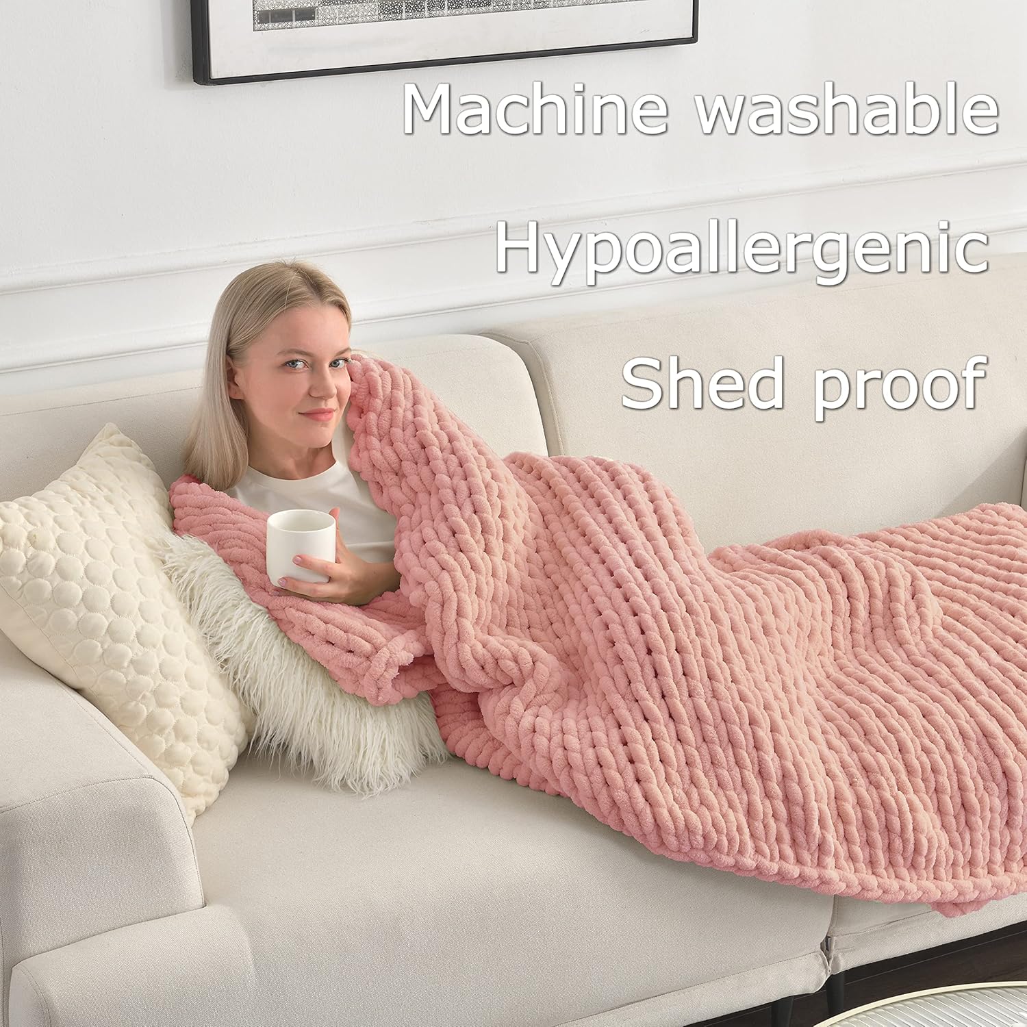 Maetoow Tighter Version Chenille Chunky Knit Blanket Throw 40×50 Inch, Handmade Warm & Cozy Blanket Couch, Bed, Home Decor, Soft Fleece Banket, Boho Thick Blankets and Giant Yarn Throws,Rose Pink