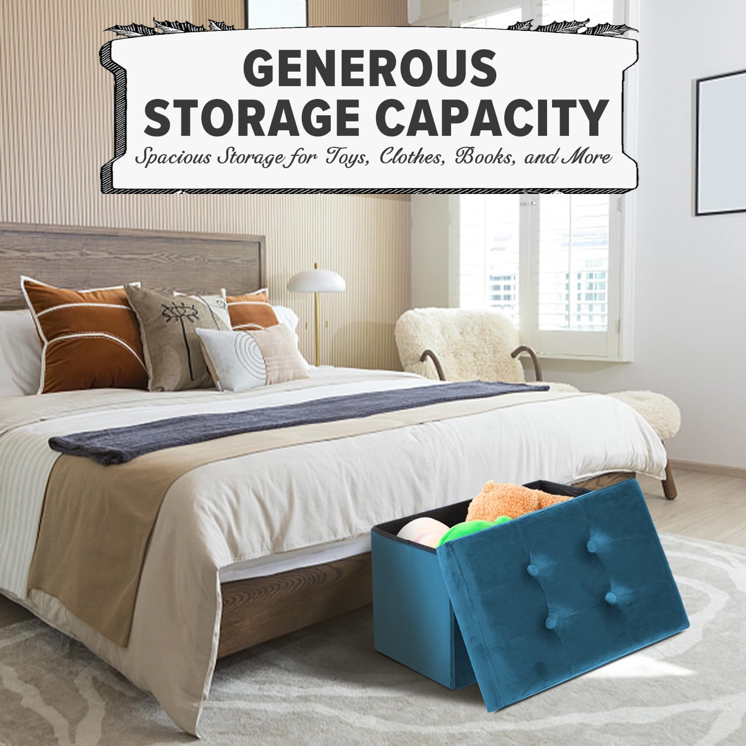 - γLarge Storage Spaceγ It is made of high quality fiberboard frame, so you can sit on it with confidence. It's perfect for your bedroom or living room. Whether used as a under desk foot rest or as living room storage, this ottoman foot rest provides maximum comfort. The velvet folding footstool serves as a ottoman with storage for living room to store Christmas gifts, blankets, cushions, books and sports equipment. It helps to keep the room organized and neatly hide clutter