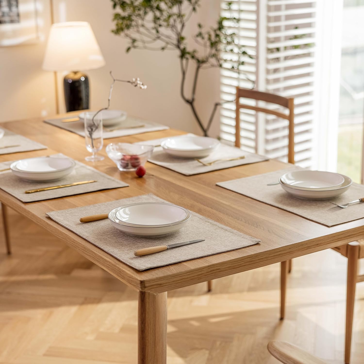 Demetex Linen Placemats Set of 6 Heat Resistant Wipeable Cloth Table Place Mats for Dining Table Indoor Restaurants, 13 x 19 inches, Linen