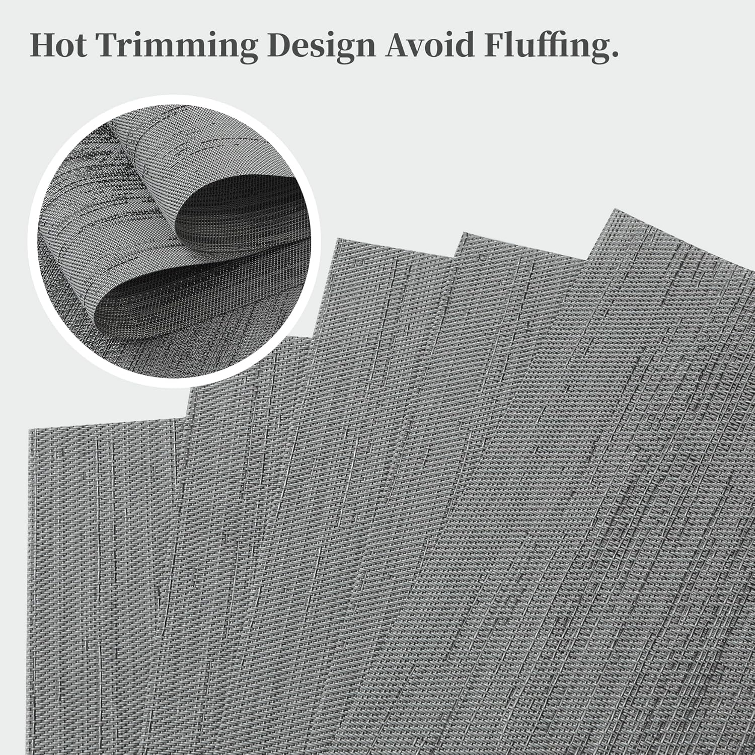 Leetaltree Grey Placemats, Heat Resistant Non-Slip Place mats for Dining Table, Washable Durable PVC Vinyl Woven Table Mats (Set of 12)