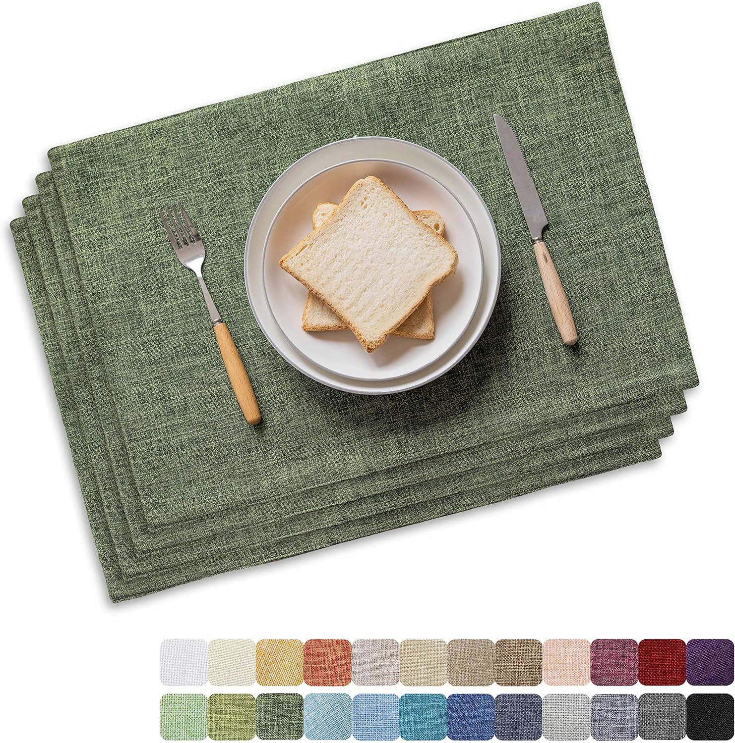 Home Brilliant Linen Cloth Placemats Set of 4 Heat Resistant Dining Table Place Mats Table Mat Kitchen for Wedding Holiday Parties Decor, Green