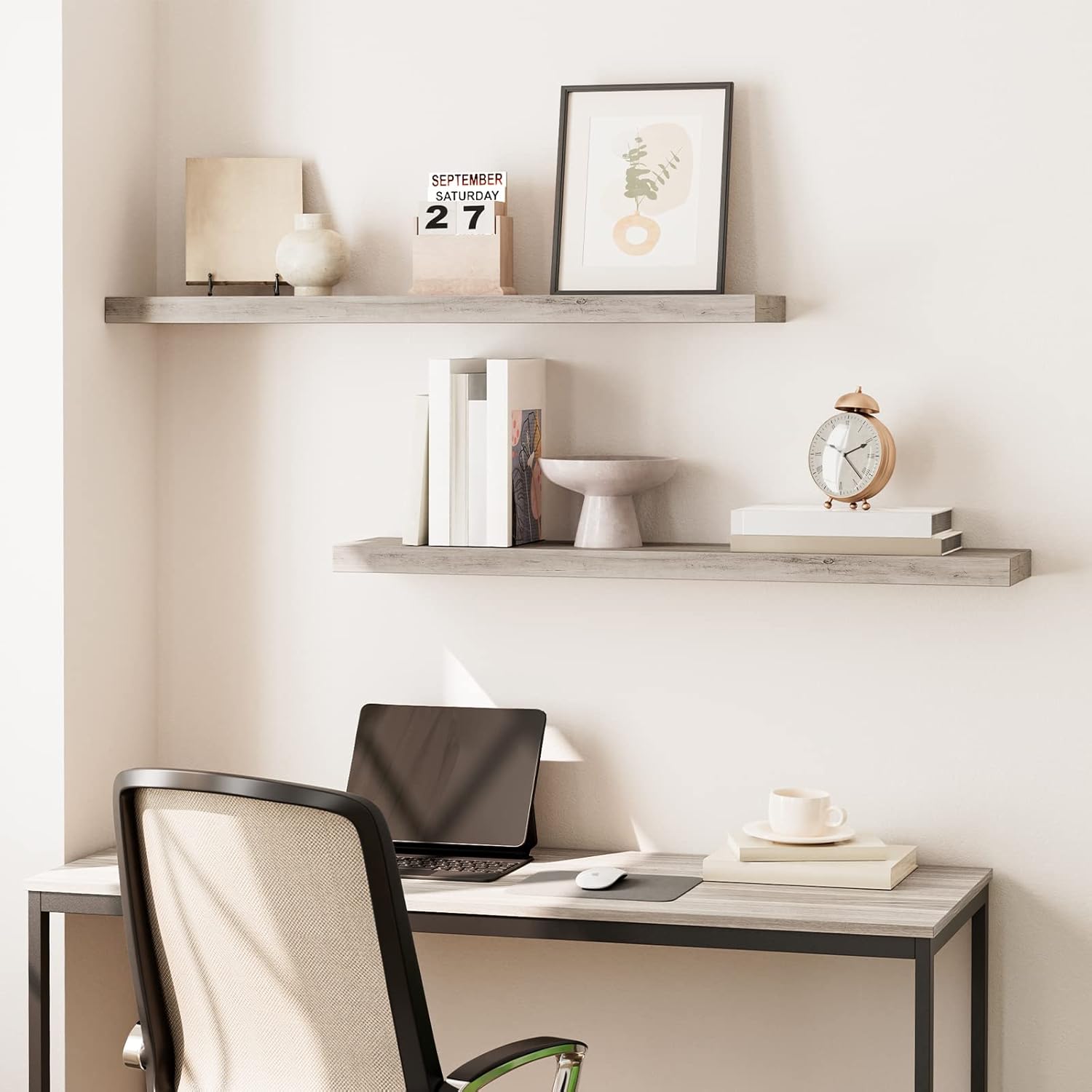- Exquisite Wall Surface Decoration: Two classic and elegant greige wooden shelves can be placed on each wall surface of all household rooms. This floating shelf for room wall is not only for its decoration effect, but also for this wall shelves high practicality. It is an ideal place to display your beloved photos, trophies and other delicate ecorations