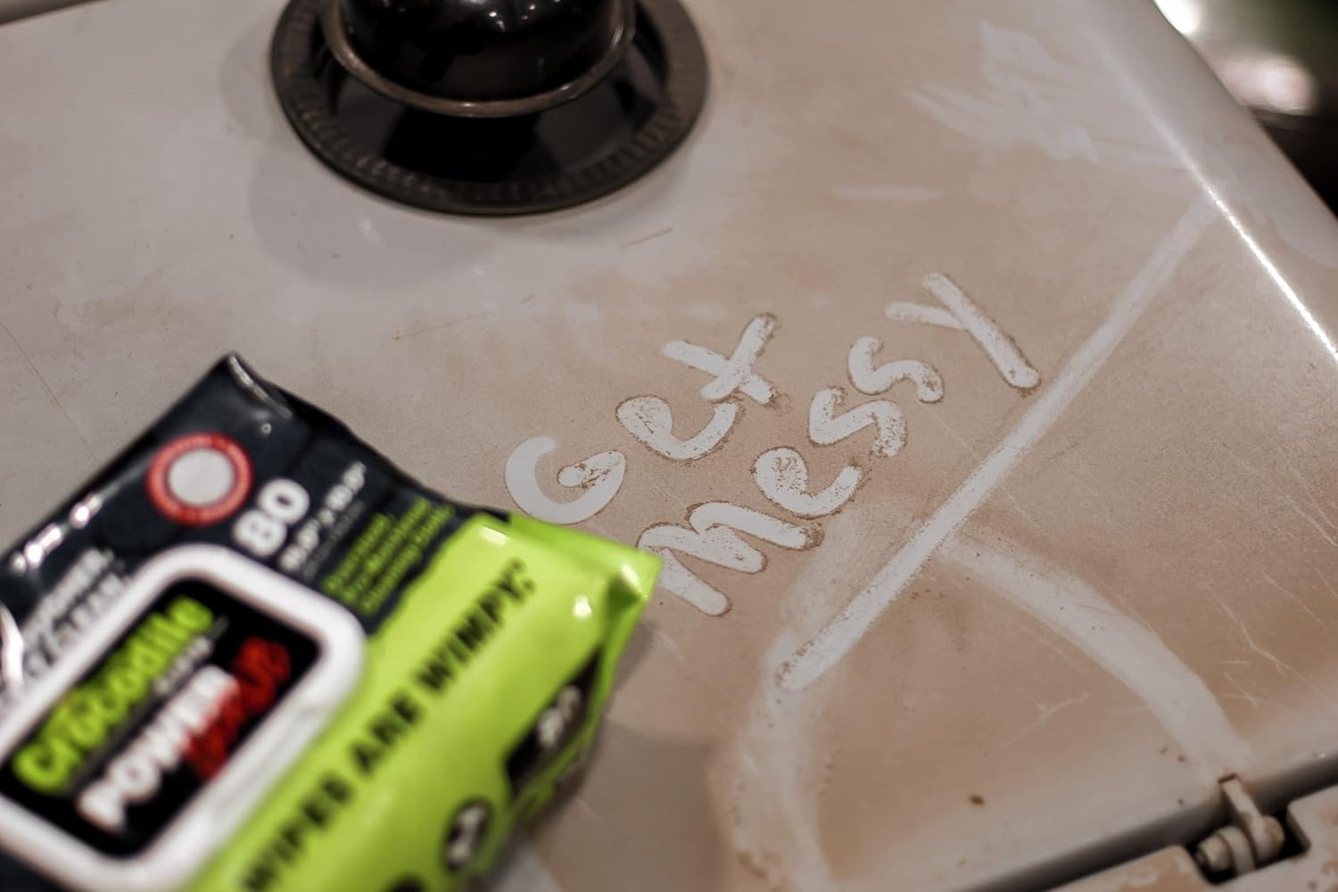 - Dual-Sided Action: Scrubbing side is textured to scour through dried-on, baked-on or caked-on grease and grime on hands, tools and surfaces. Follow up with the smooth side to wipe the gunk away. These wipes are non-scratch for most surfaces.