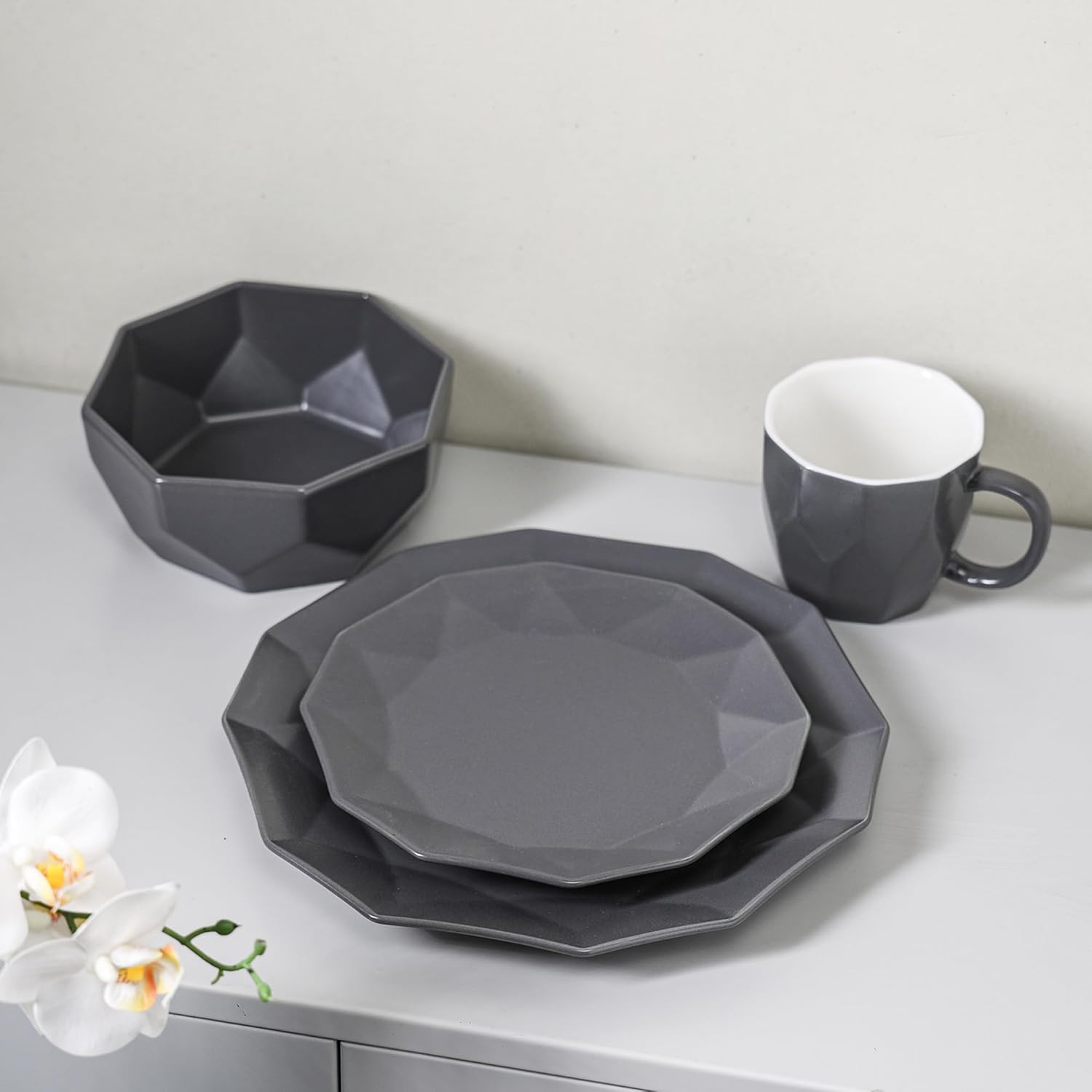 - PERFECTLY SIZED: This modern set of 32 pieces includes eight 7.76-inch salad plates, eight 10.39-inch dinner plates, eight 23.6 fl.oz. bowls and eight 10.1 fl.oz. mugs.