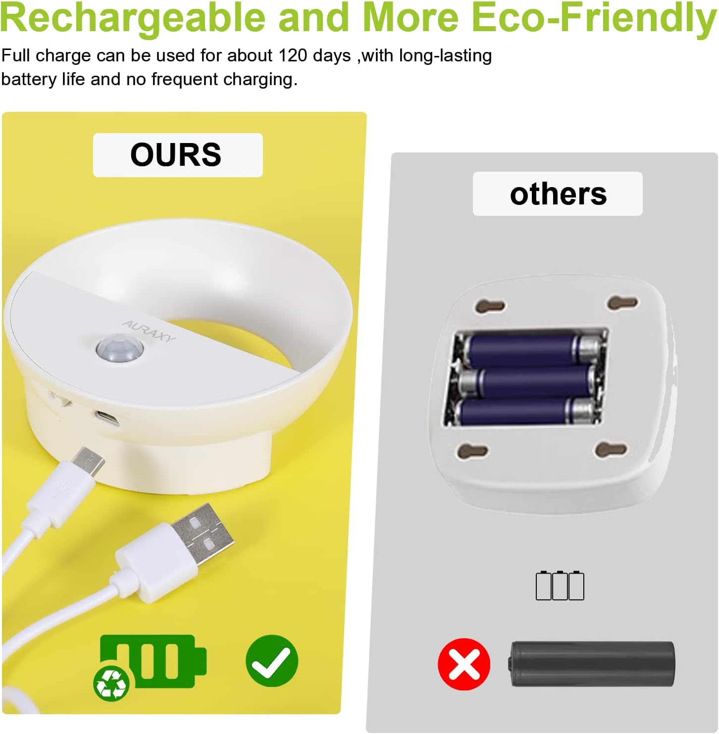 - 【Rechargeable Motion Sensor Nnight Light 】 The rechargeable night light saves you from having to buy non-recyclable AAA batteries. A full charge is about 120 days in automatic mode (Note: 10 triggers per day, 20 seconds each time). Power saving and worry-free choice.