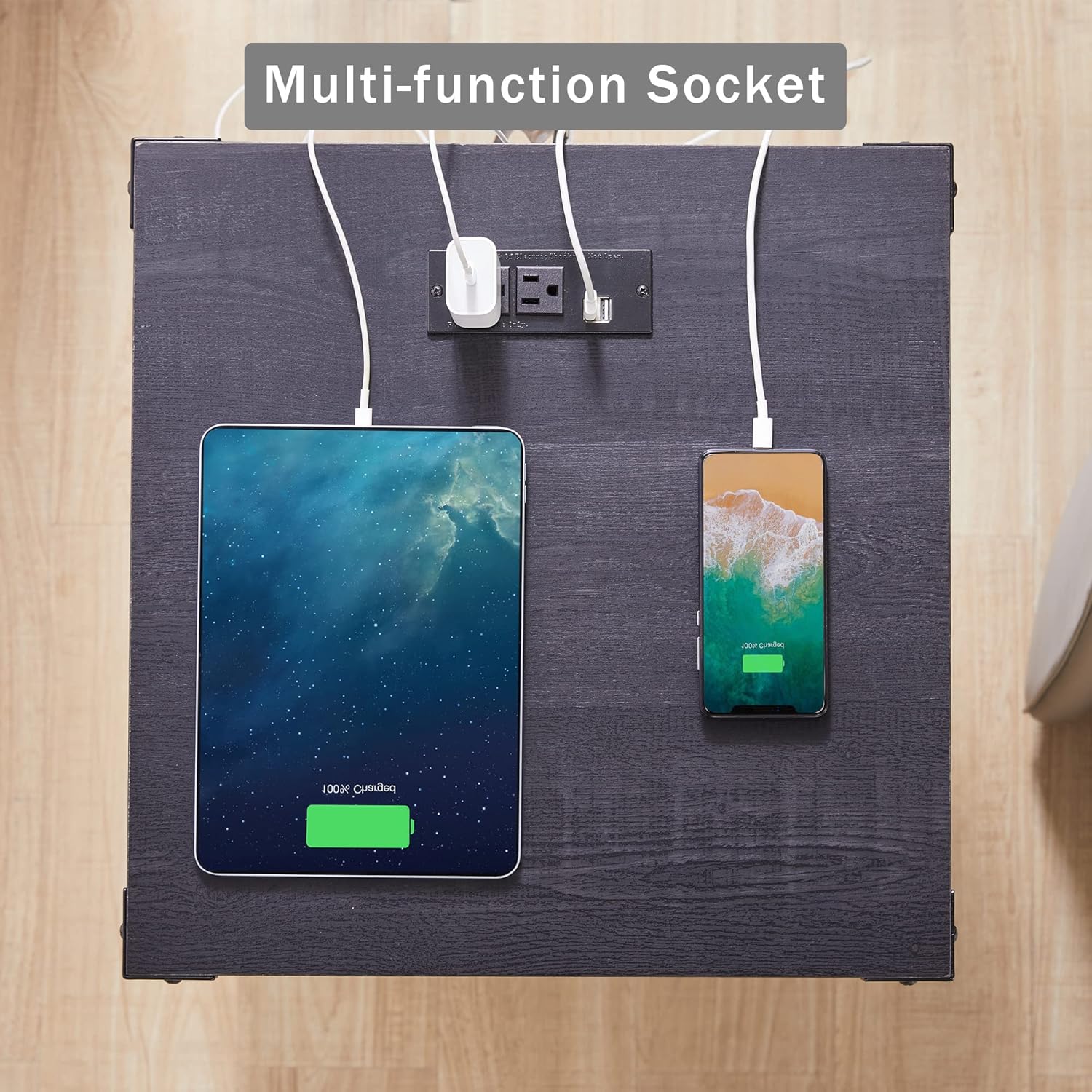 - USB OUTLETS FOR CHARGING: Our nightstand with a built-in charging station allows you to easily charge your devices. This can be especially useful for keeping your phone, tablet, or e-reader charged and ready to use during the night.