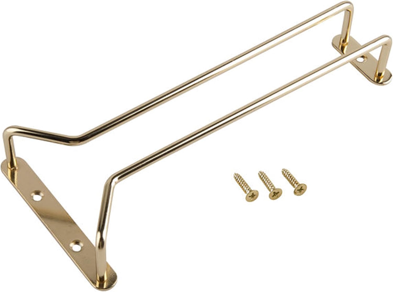 - This strong metal rack features a slim design that is easy to clean. Ideal for any bar space, this rack helps keep your counters clear of glassware, and the elegant brass plated finish is sure to enhance any setting.