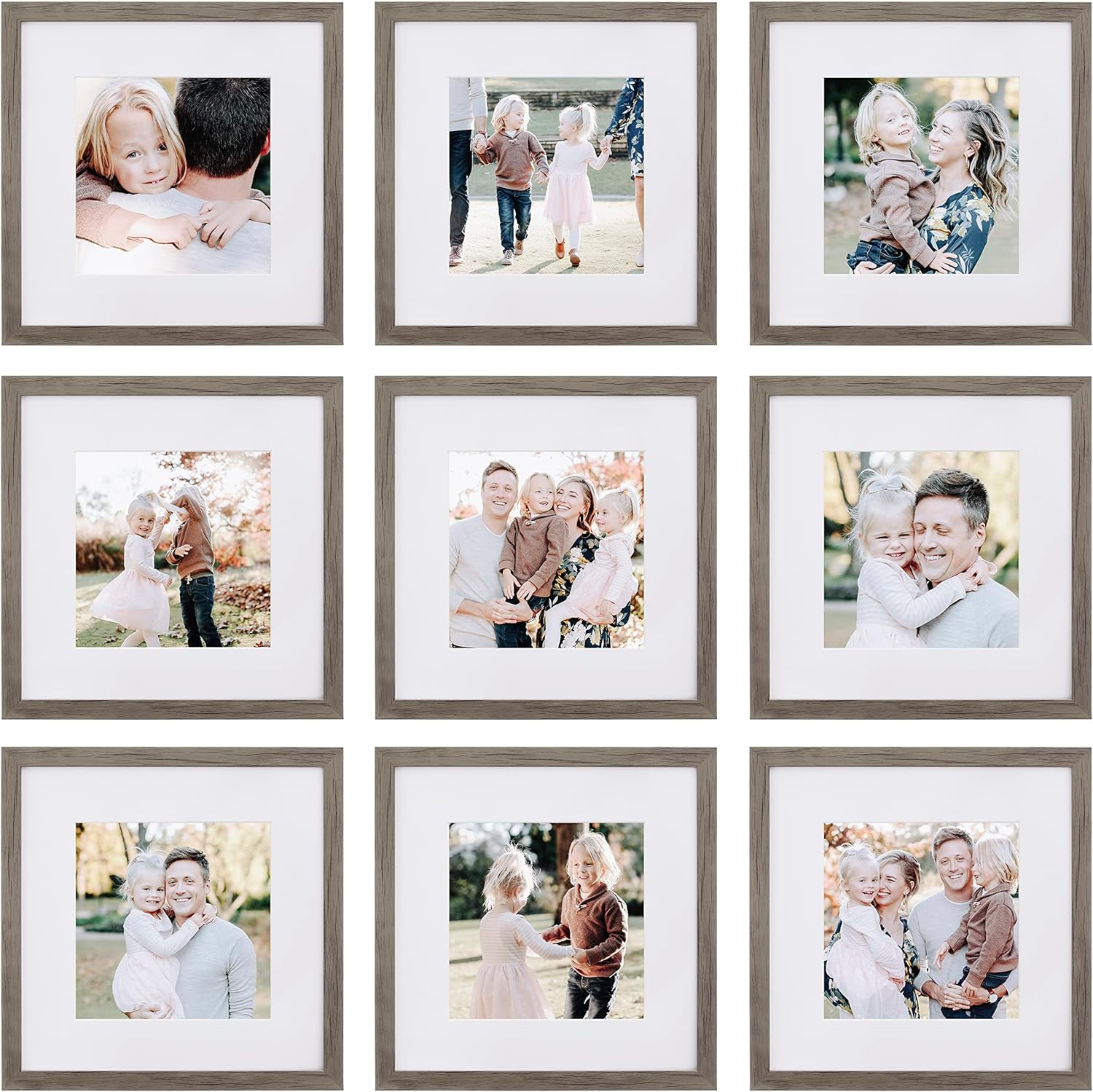 Sheffield Home 9 Piece Gallery Wall Frame Set, 12x12 Inch, Natural