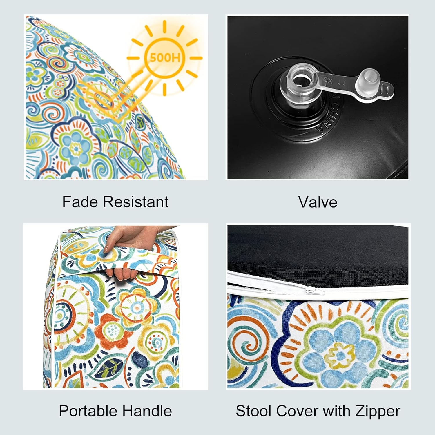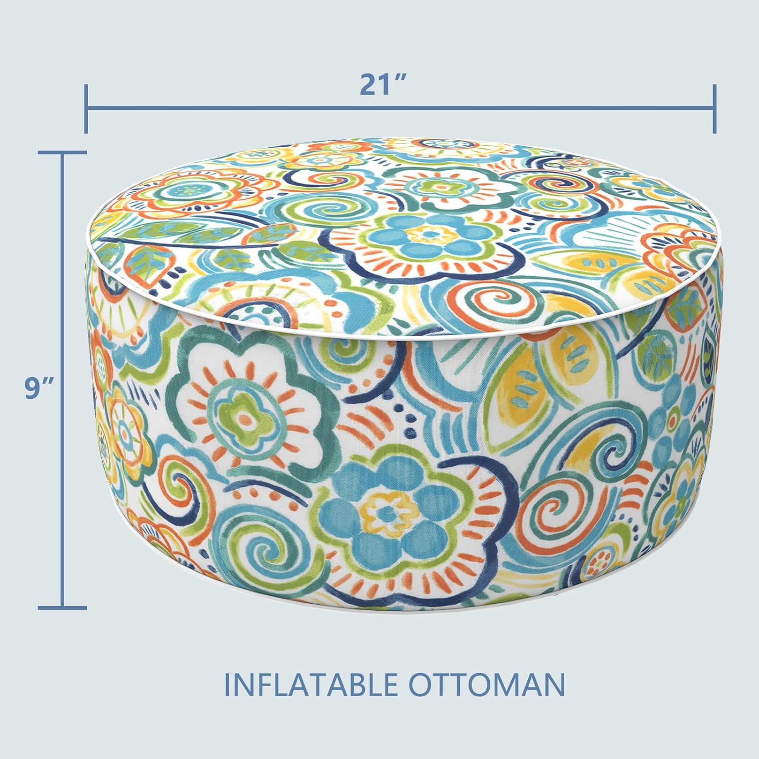 LVTXIII Outdoor/Indoor Inflatable Stool Ottoman, All Weather Patio Footrest Pouf, Portable Round Ottoman for Patio Garden, Camping or Home, D21xH9 Inches, Flower Blue