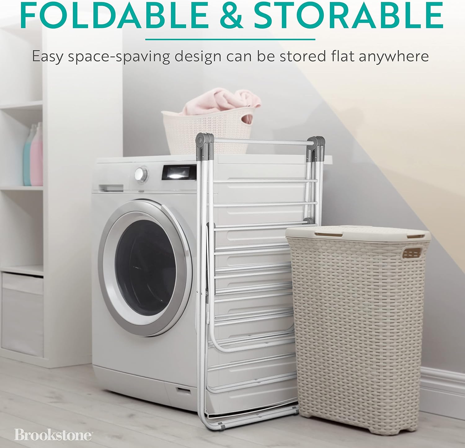 - VERSATILE 2 TIER DRYING RACK FOR CLOTHES – featuring two tiers, you can dry all kinds of laundry using the Brookstone clothes drying rack for laundry! Drape larger items such as hand towels, linens, pants, shirts and scarves over the top tier, and use the lower rack for smaller items such as underwear, washcloths socks and tops. With good aeration, your laundry will be left, clean, fresh-smelling, every time.