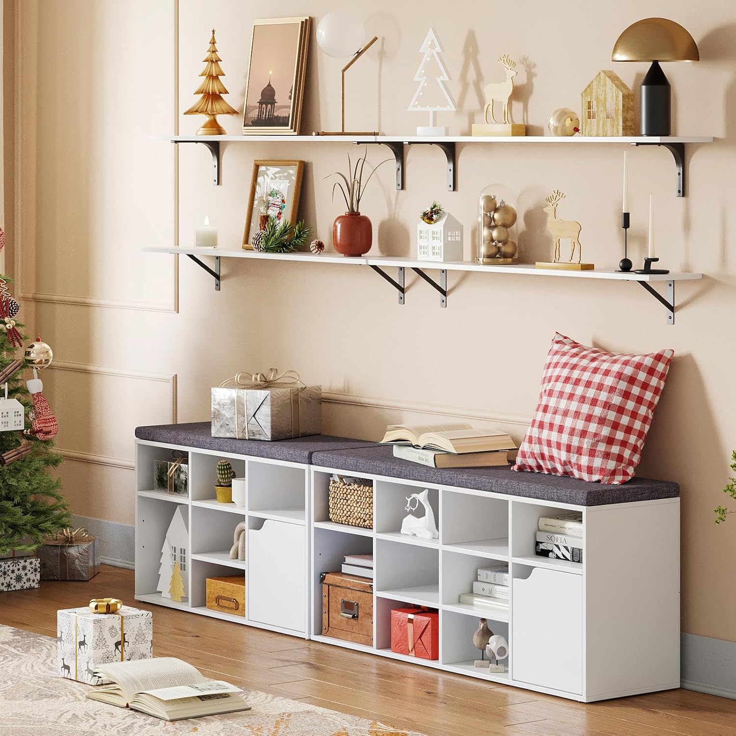 - ใWide ApplicationใExtra long shelves for wall storage is gospel of small family to enjoy the tranquility of home. Large floating shelves allow you to store books, games, decorations, plants, towels, photos, collectibles etc. Even to be an ideal play area for your cats. Create additional storage in living room, bathroom, bedroom, closet, balcony, study, kitchen, laundry, bar area, pantry and office
