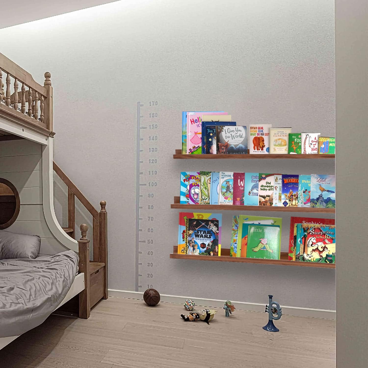 - High-quality Natural Wood: Size-36 x 4.5 x 2 inches.The floating shelf on the wall is made of pure natural solid wood. We insist on using 100% solid wood, so the wall bookcase is relatively strong and durable. And the color of the picture frame shelves is manually operated.