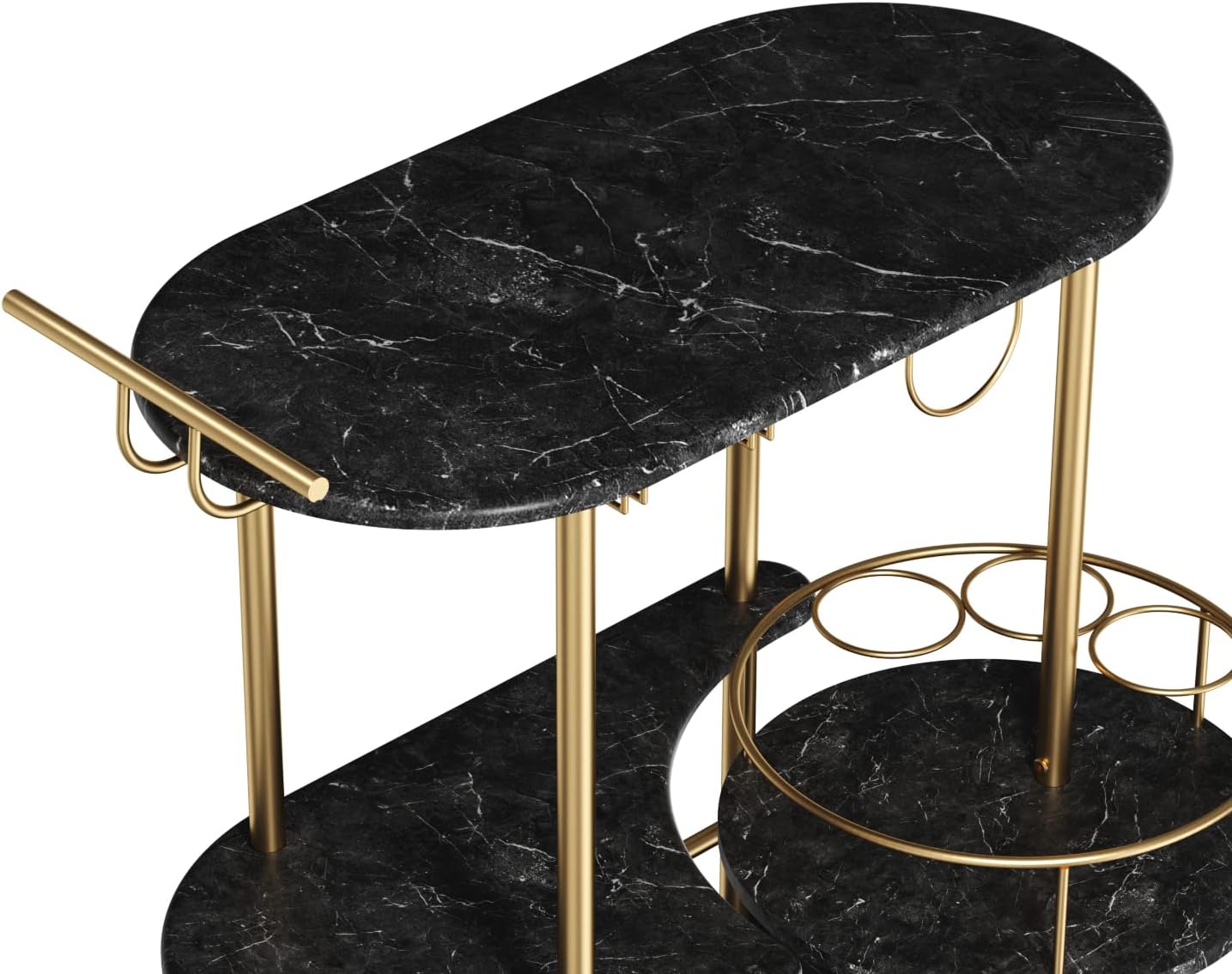 - Kitchen Coffee Cart on Wheels: The shining gold-tone frame and faux marble shelf adds a hint of luxury. You can use this rolling bar cart to store cocktail and plates and let it be the best decoration for your home