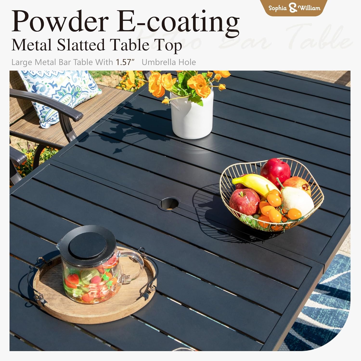 - 7 Pieces Bar set:large 66 bar table with 6 bar chairs, great for your large family enjoy daily leisure time. Sturdy x brace under the table makes it more stable. Umbrella hole design, great for sunshine day use