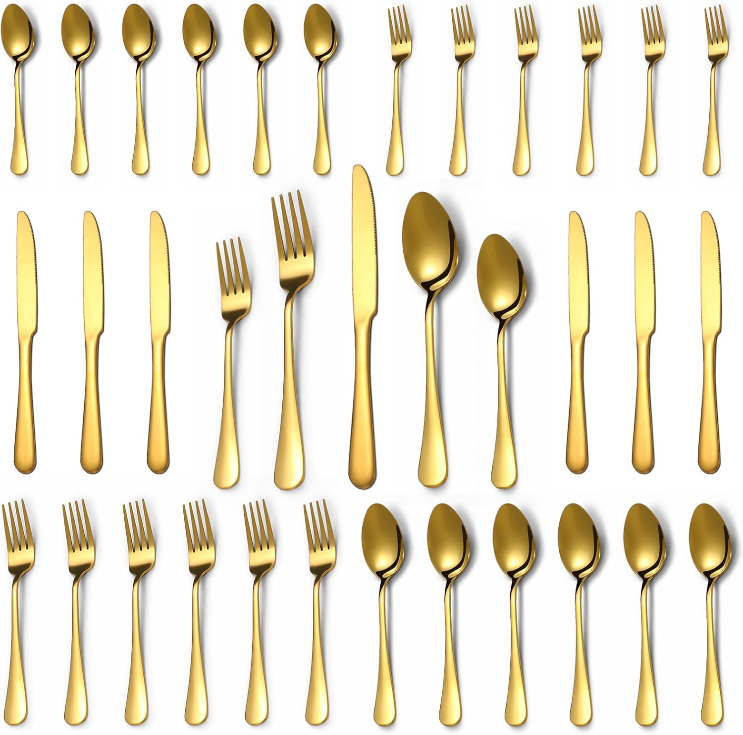 - ✅ PRESENTABLE PACKING, GREAT GIFT IDEA---Classic gold utensils set comes in a giftable box, this gold flatware set for 6 can be gifted as kitchen essentials for new apartment, housewarming gifts for new house, wedding gift, Thanksgiving gift, Christmas gifts, etc,. Great kitchen silverware sets, the recipient will be very happy with this gold eating utensil set.