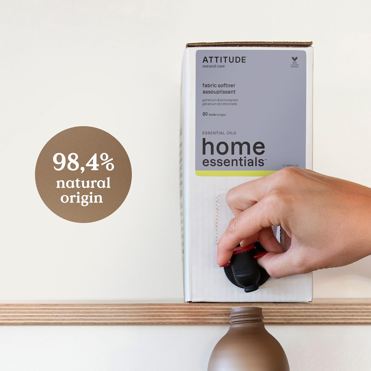 ATTITUDE Fabric Softener with Essential Oils, Vegan, Plant and Mineral-Based Ingredients, HE, Bulk Refill, 80 Loads, Geranium and Lemongrass, 67.6 Fl Oz