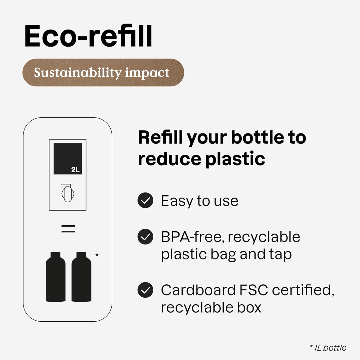 - GOOD FOR THE PLANET: Eco-refills are easy to carry and to use from the comfort of your home; ideal to refill our aluminum bottle infinitely
