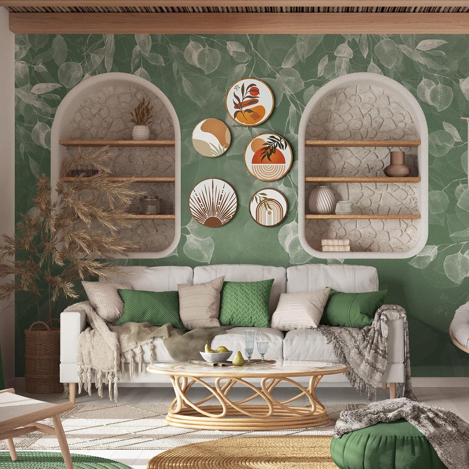 - Boho Style Decor: the boho wall decors are designed with boho style, adopting pastel colors and simple patterns, such as lines, sun, leaves and so on, clear and geometric, modern and minimalist, can be an elegant and delicate decoration to your places