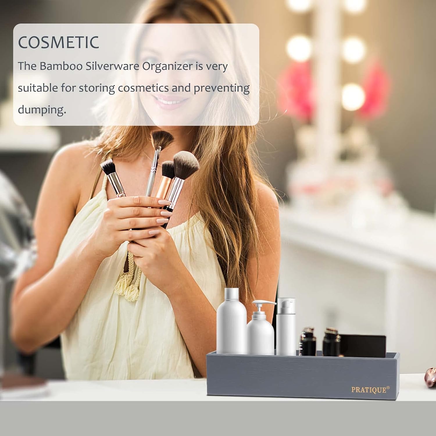 - 【PRACTICAL STORAGE SPACE】PRATIQUE drawer organizer can reduce clutter and avoid desperately searching for lost items. Ensure drawers in the kitchen and beyond are neat and organized.The flatware organizer is made of bamboo, which has a neutral light wood color and it will look beautiful as your kitchen, closet, garage and office drawer.