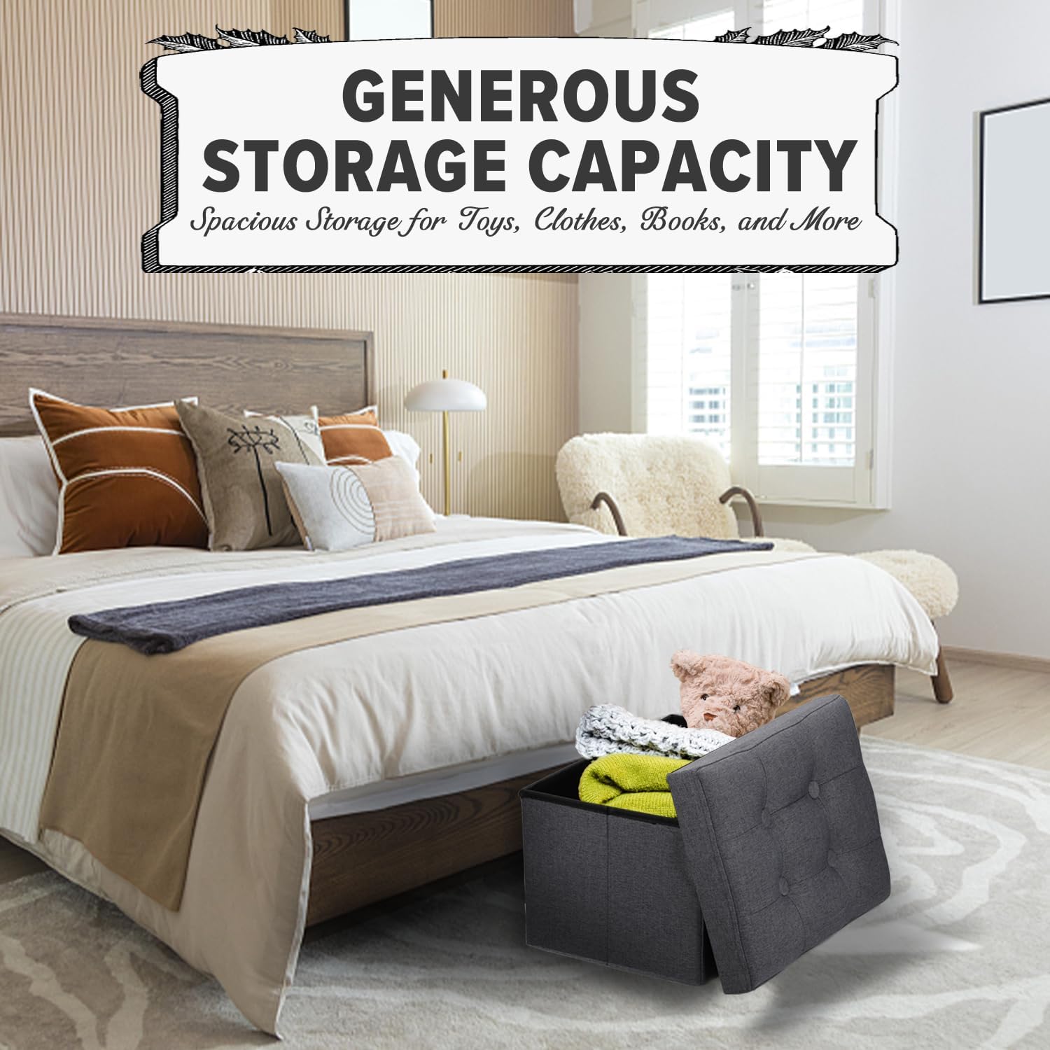 LINMAGCO Ottoman Storage Ottoman with Storage Small Foot Rest Stool Under Desk Stool Short Folding Footrest Linen Cloth Dark Gray 16X12X12IN