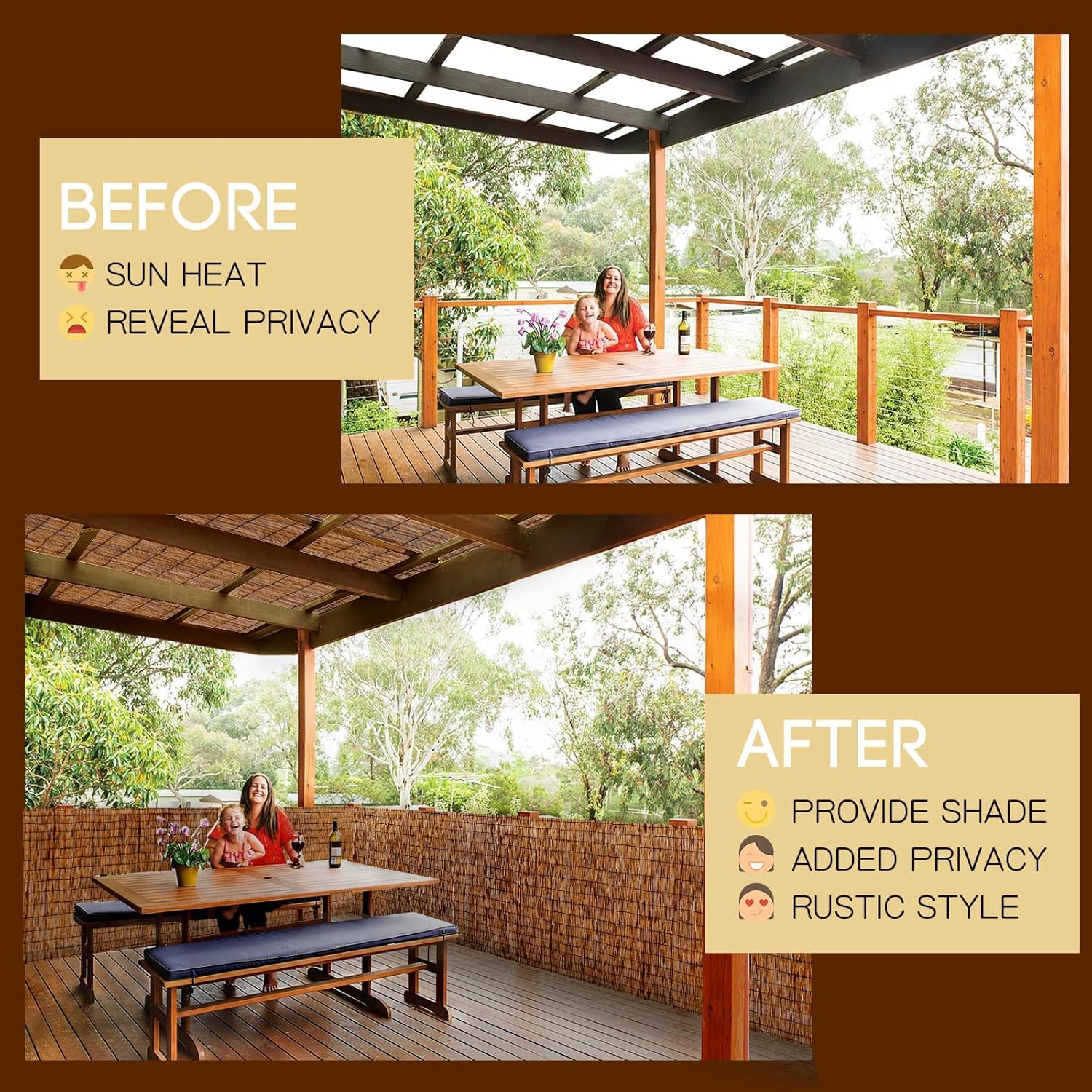 - 【Bamboo Privacy Fence】If you are looking for a little privacy on your balcony, this is the way to go!Reeds are closely knitted together to block out scorching sun rays.and views from neighbors Effectively protecting your privacy, while letting in slight light and air for more breathability.
