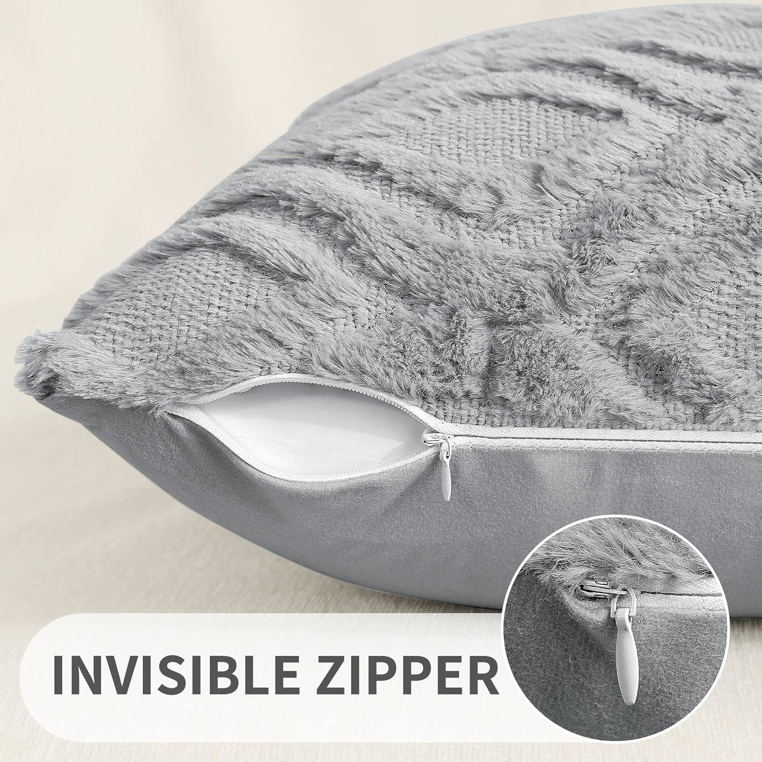 decorUhome Fall Throw Pillow Covers 24x24 Inch Set of 2, Soft Plush Decorative Faux Fur Grey Solid Couch Pillow Covers, Accent Farmhouse Neutral Square Euro Pillow Cases for Sofa Bed Living Room