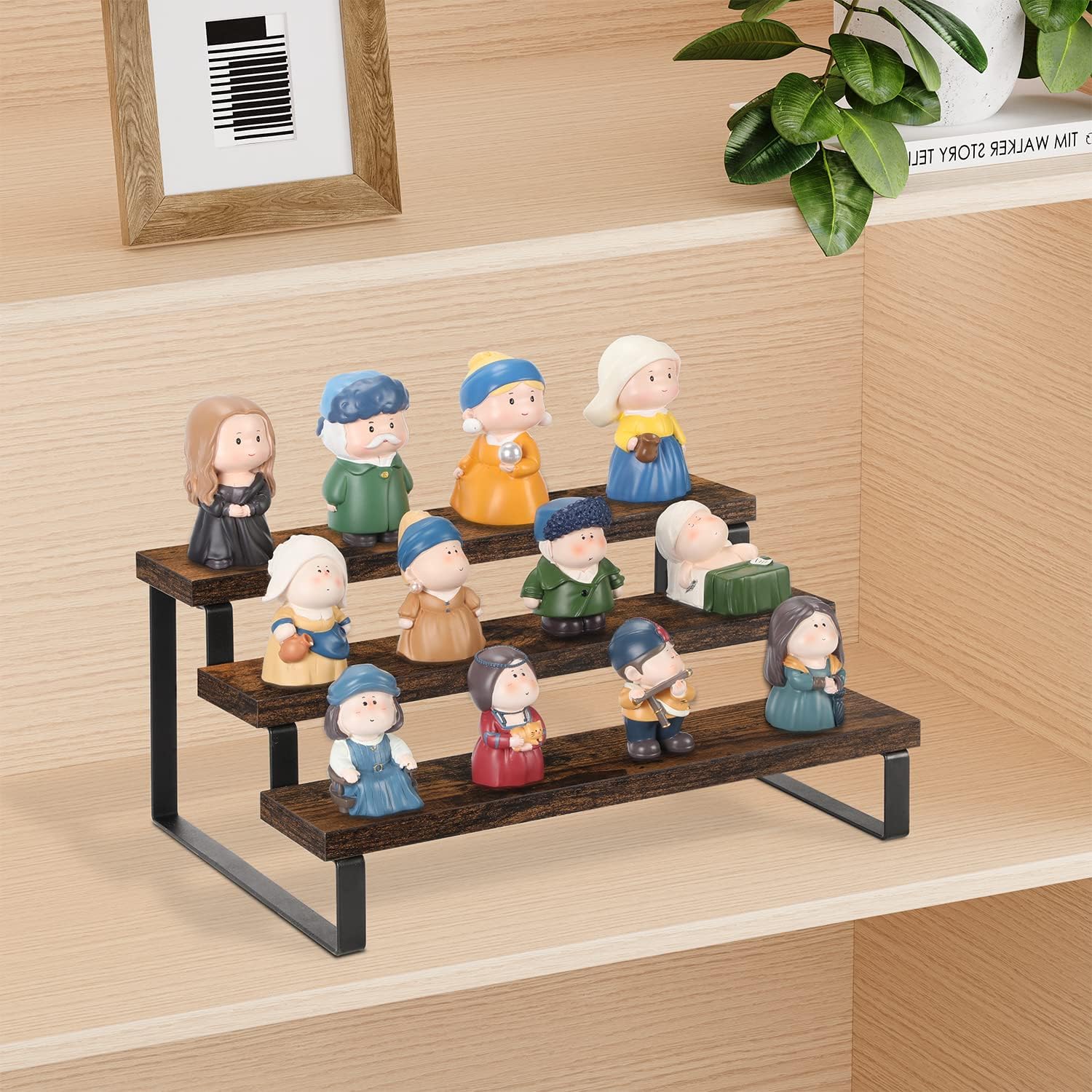 - Convenient Design: The stepped design makes efficient use of your counter space. This wooden display riser is a great idea for displaying toy figurines in cabinets, celebrating party desserts, and cosmetics on the dresser. The raised tiers help to create an eye-catching feature for your items.