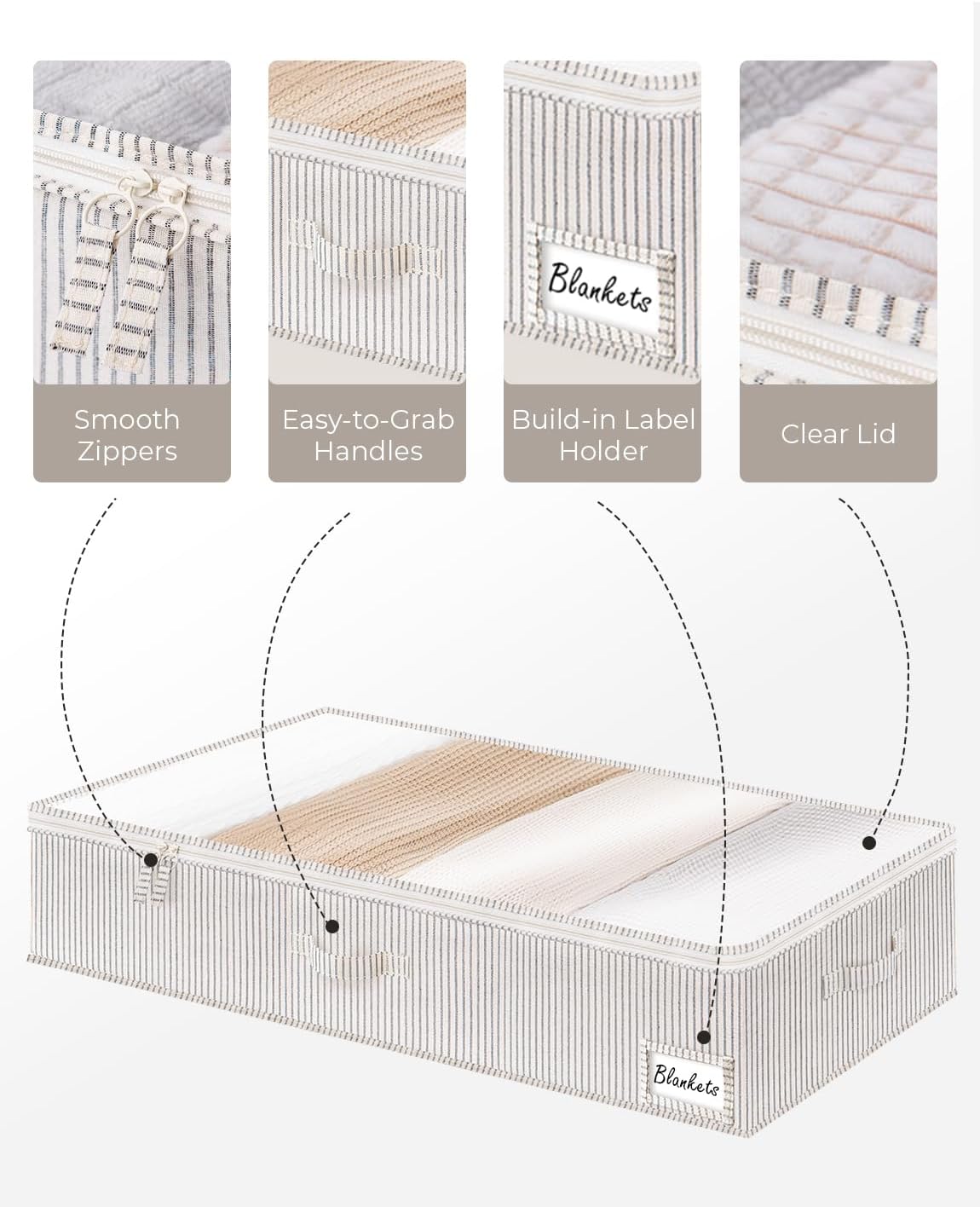 - Underbed storage organizers feature a big transparent lid and a label holder.