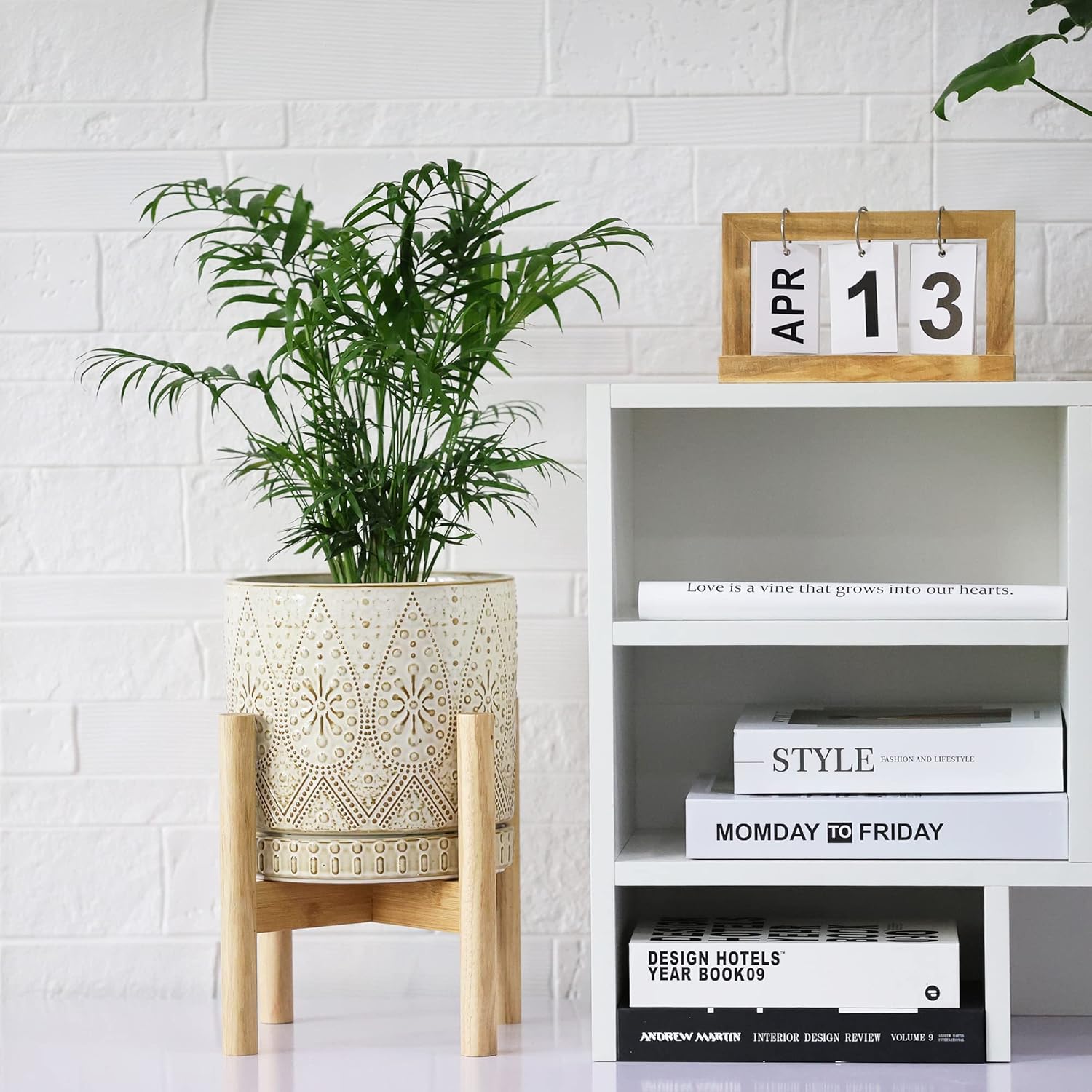8 Inch Plant Pot with Stand, Ceramic Planter with Drainage Holes, Saucers and Mesh Pads for Indoor-Outdoor Plants
