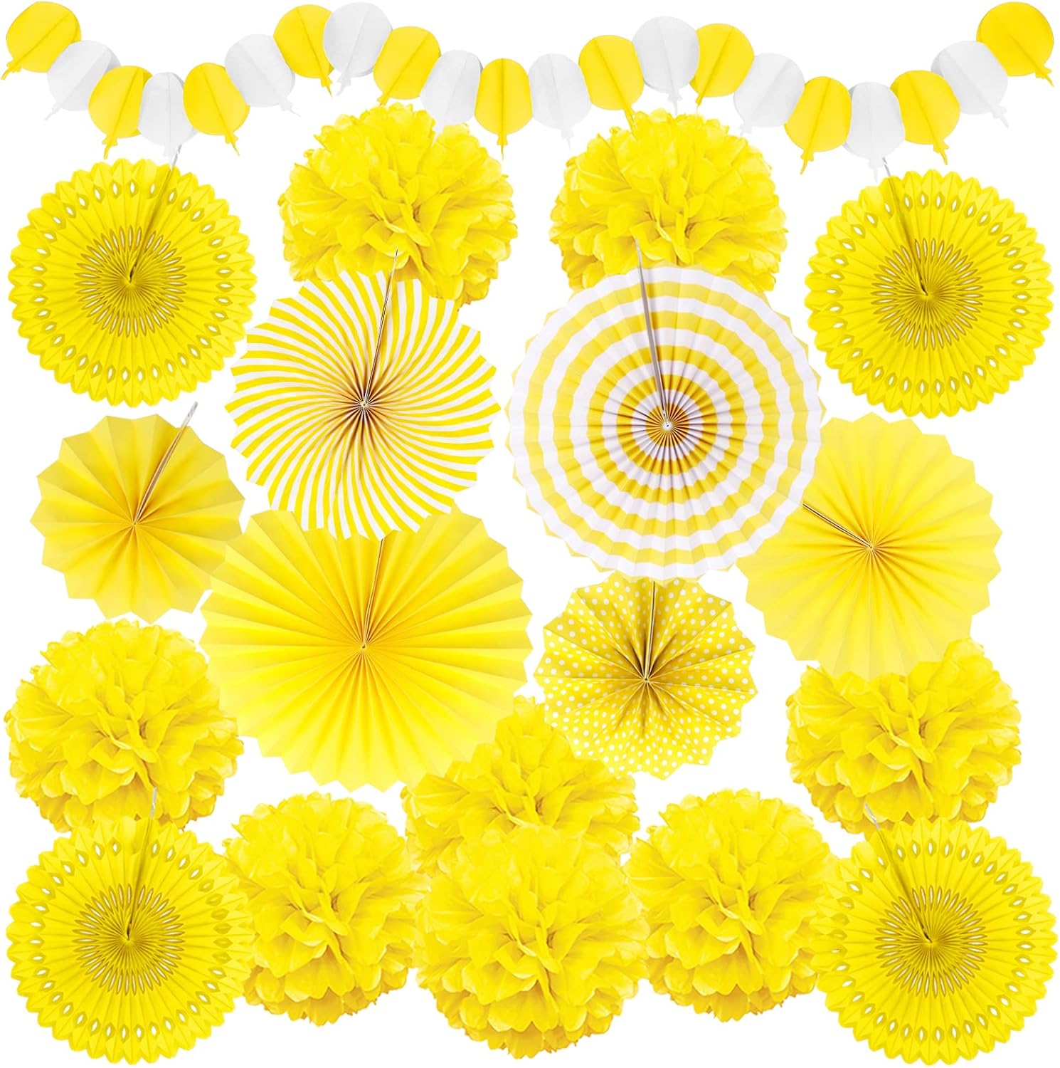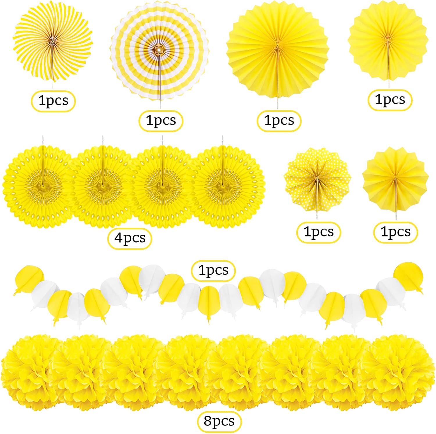 Yellow Party Decorations, Papar Fans Pompoms Fans Garlands for Birthday Bridal Baby Shower Wedding Graduation Spring Festival Party Decorations