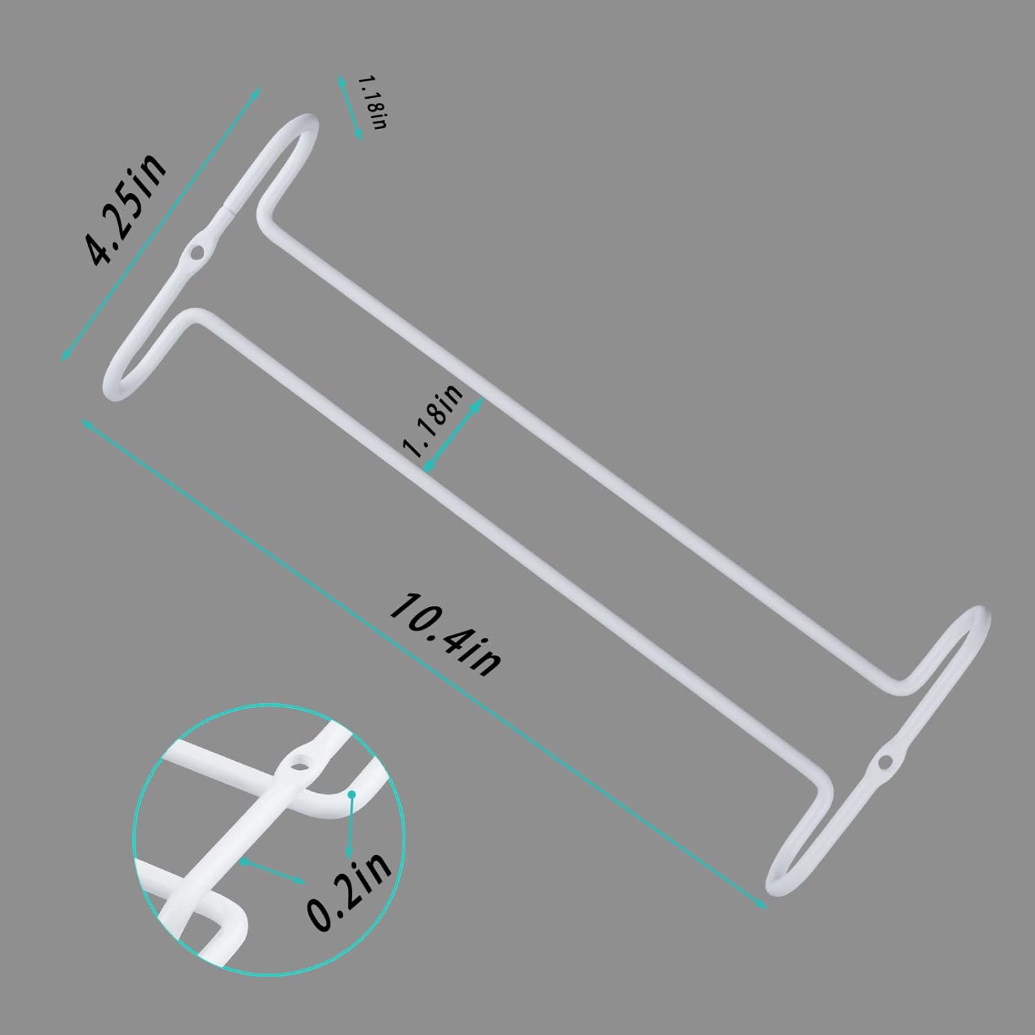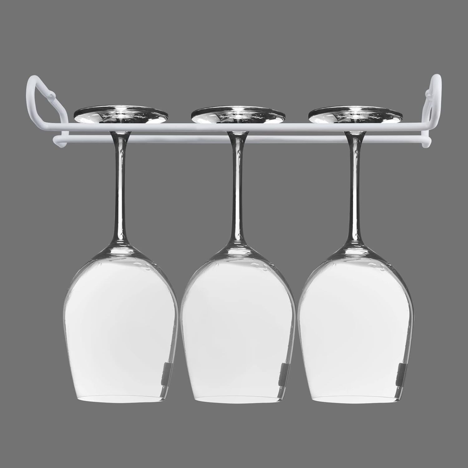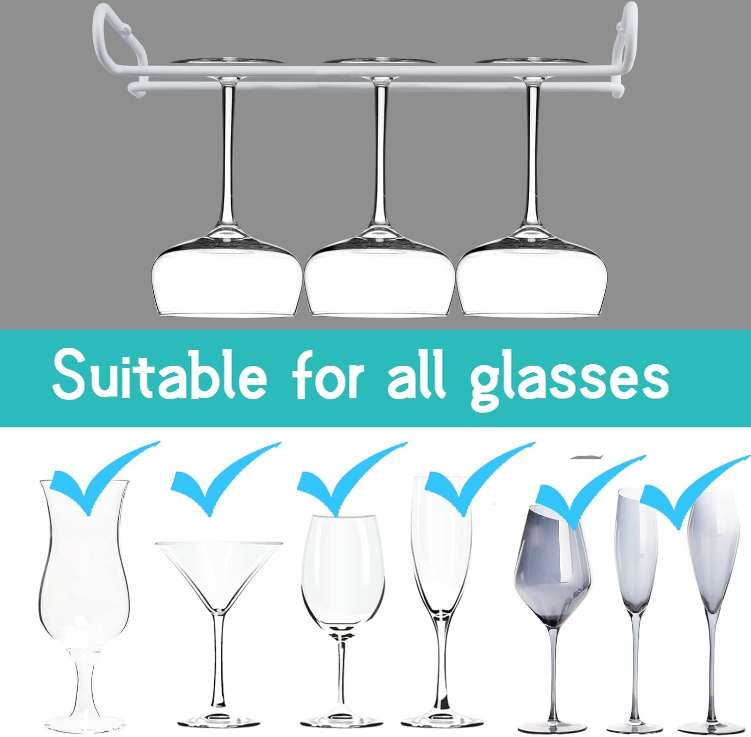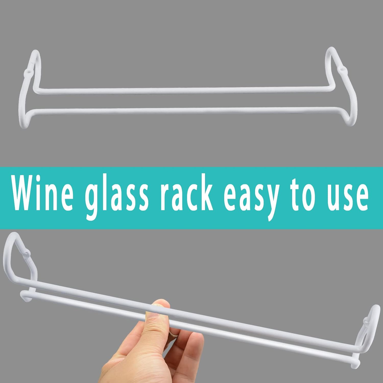 White 4 Wine Glass Rack Under Cabinet Shelf 10 Inch Stemware Storage Hanging Hanger Organizer Glasses Holder with Drying Under Counter Metal for Kitchen and Bar