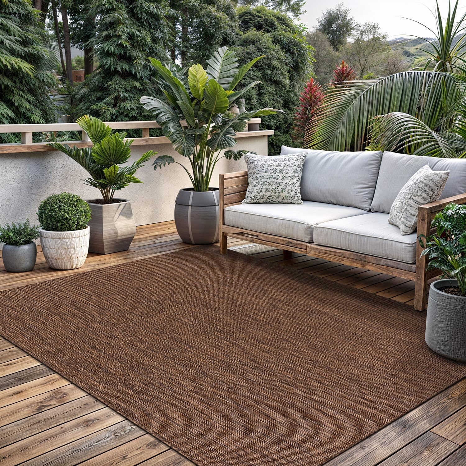 Washable Indoor Outdoor Rug Weather Resistant Carpet Modern Solid for Porch Deck Balcony Backyard Patio Rug 8x10 Gold Brown