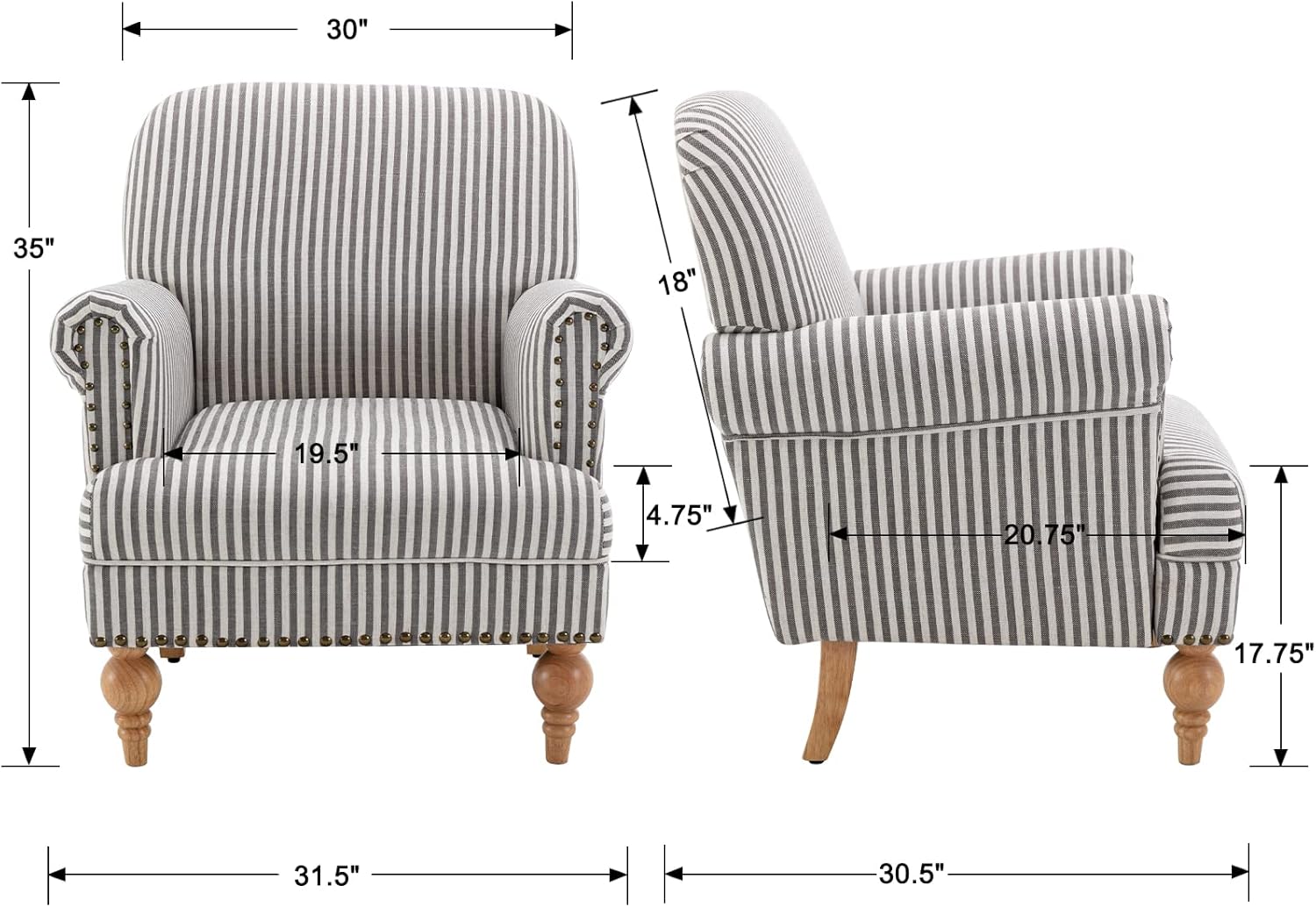 - SIZE & ASSEMBLY - The dimension of this accent chair is 31.5"W x 30.5"D x 35"H, with a 19.5"W x 20.75"D x 4.75" Thick seat. The packaging of the product comes with detailed instruction and accessories