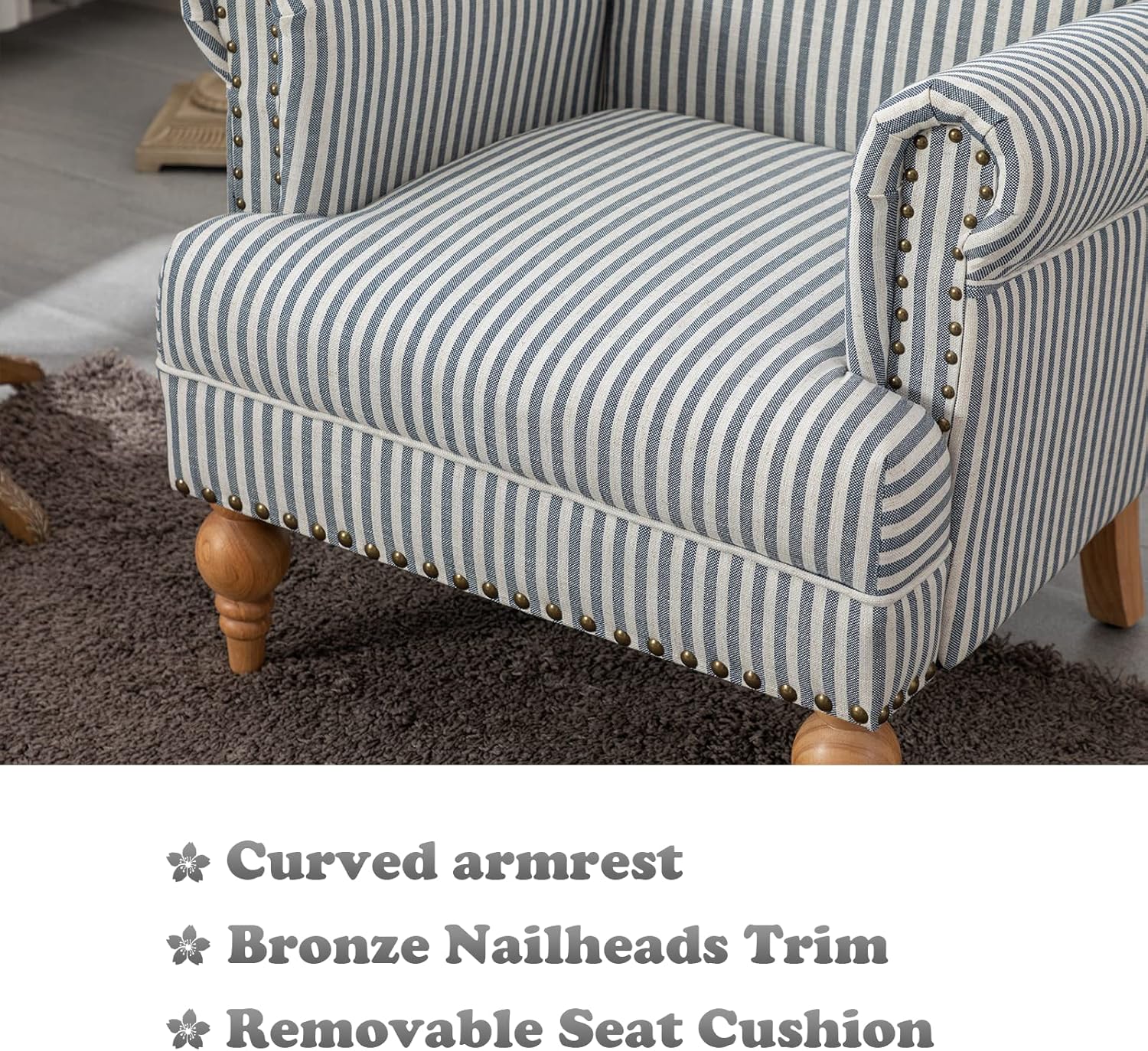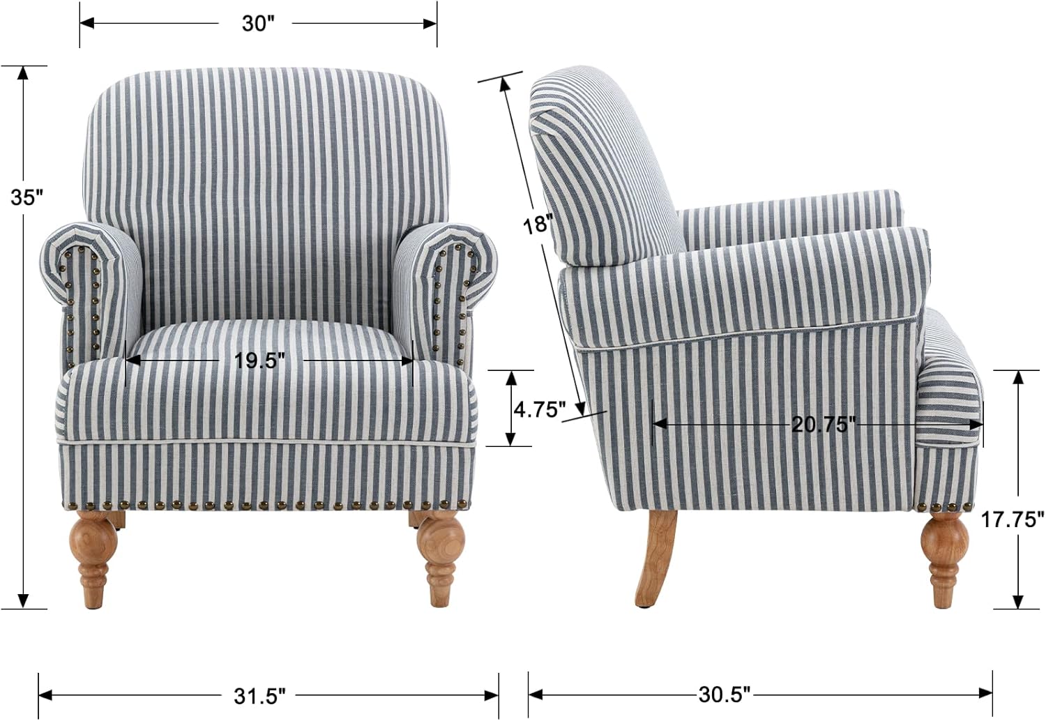 chairus Linen Accent Chair for Living Room Set of 2 Upholstered Mid Century Modern Single Sofa Chair with Solid Wood Legs Comfy Reading Armchair for Bedroom/Office Room/Recption/Lounge, Blue Stripe