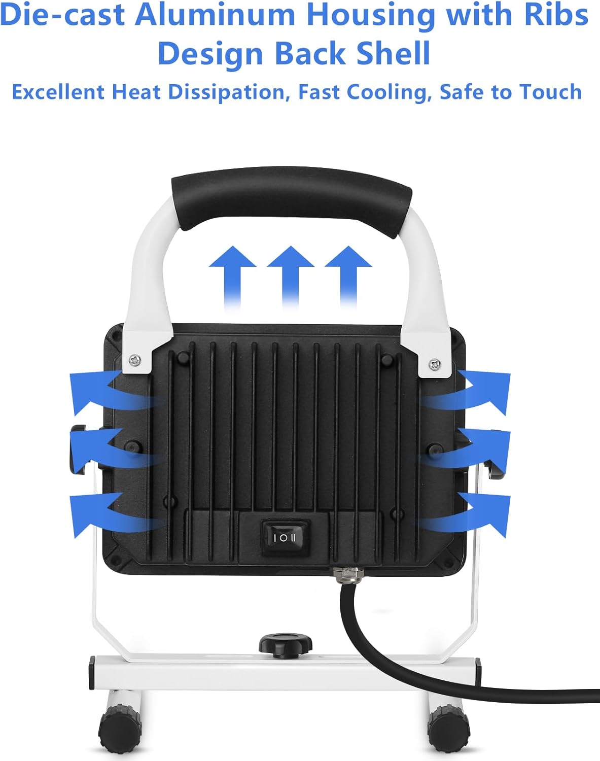 UFOND 4000 Lumen LED Work Light with Stand,40W Waterproof Portable Flood Lights, Worklight Brightness Angle Adjustable, with Switch Power Cord, Suitable for Construction Sites, Garage Workshop