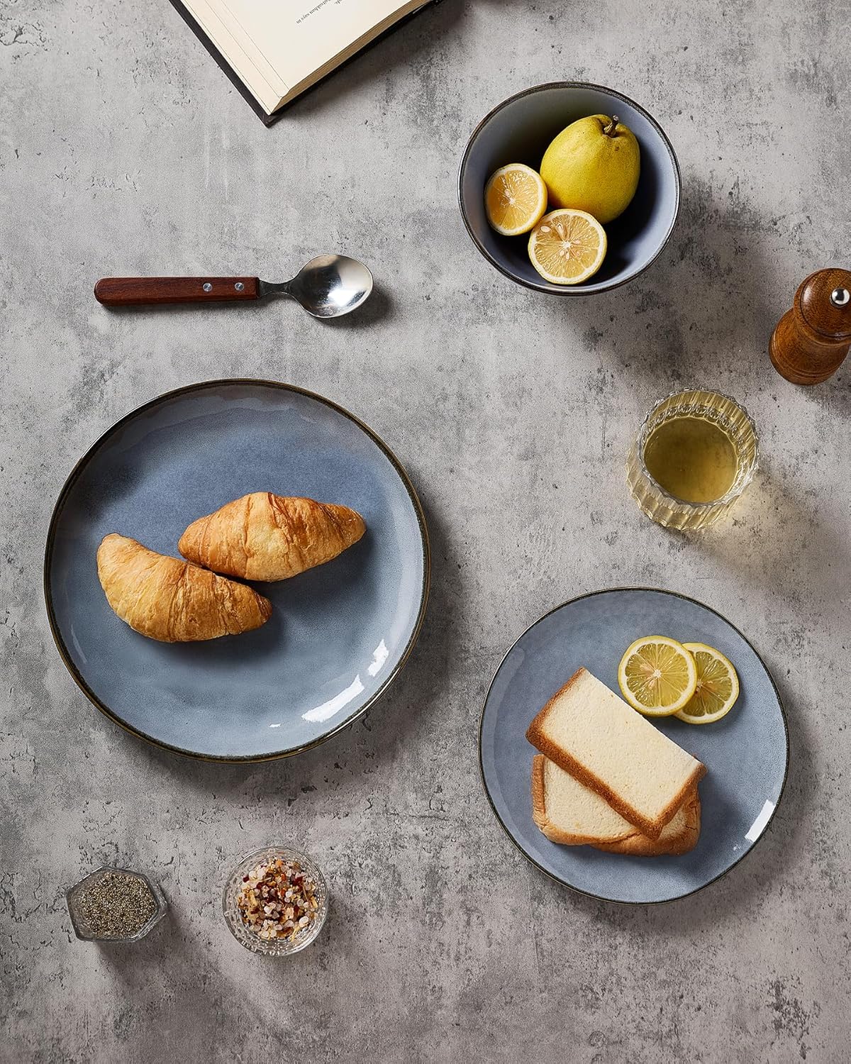Famiware Dinnerware Sets for 4, Ocean Round 12-Piece Kitchen Plates and Bowls Sets, Reactive Glaze, Microwave and Dishwasher Safe, Scratch Resistant, Blue