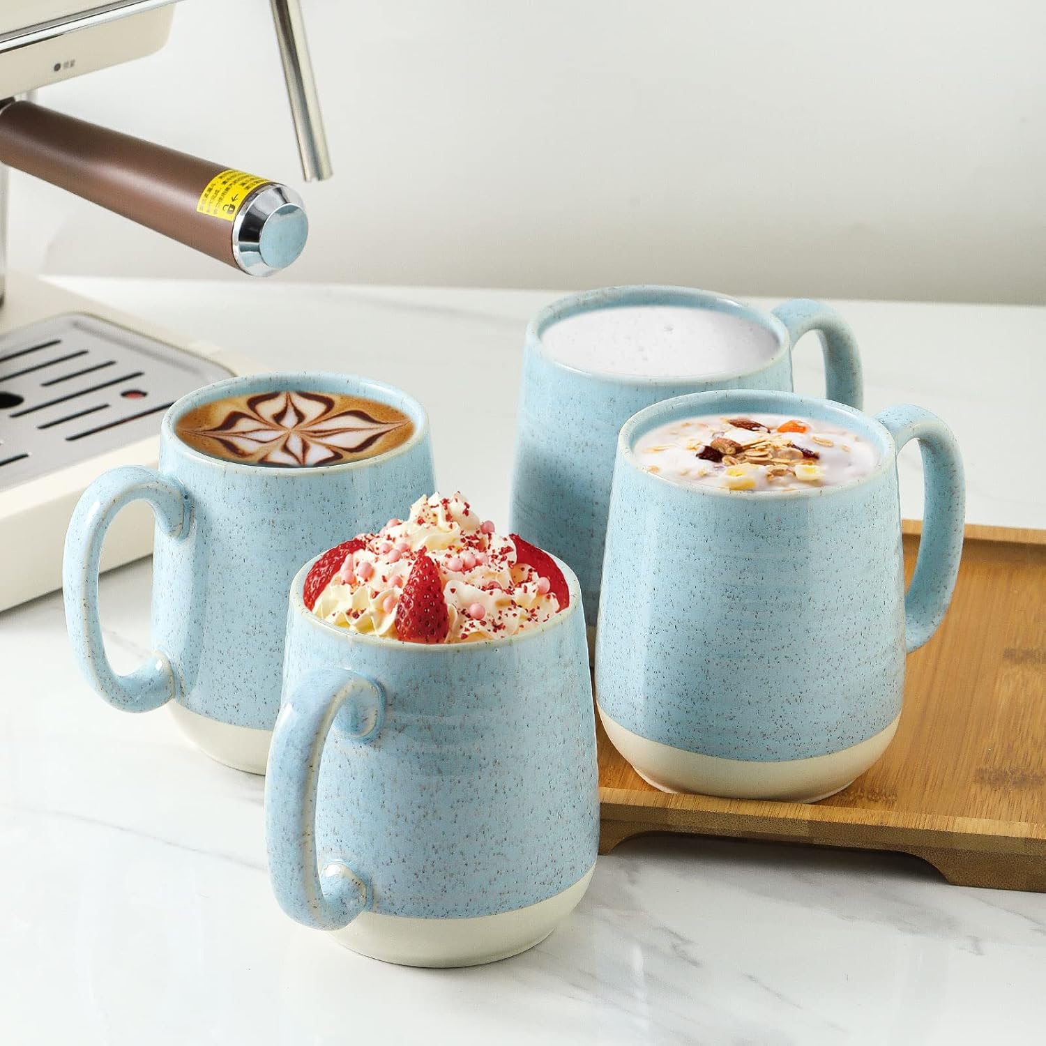 - FOOD-GRADE PORCELAIN: Our coffee cups are crafted from premium ceramic and finished with healthy glaze, making them chip-resistant, sturdy and reliable. With smooth surface, the large coffee cups set are clean up well in the dishwasher and no need to worry ablut coffee stains.