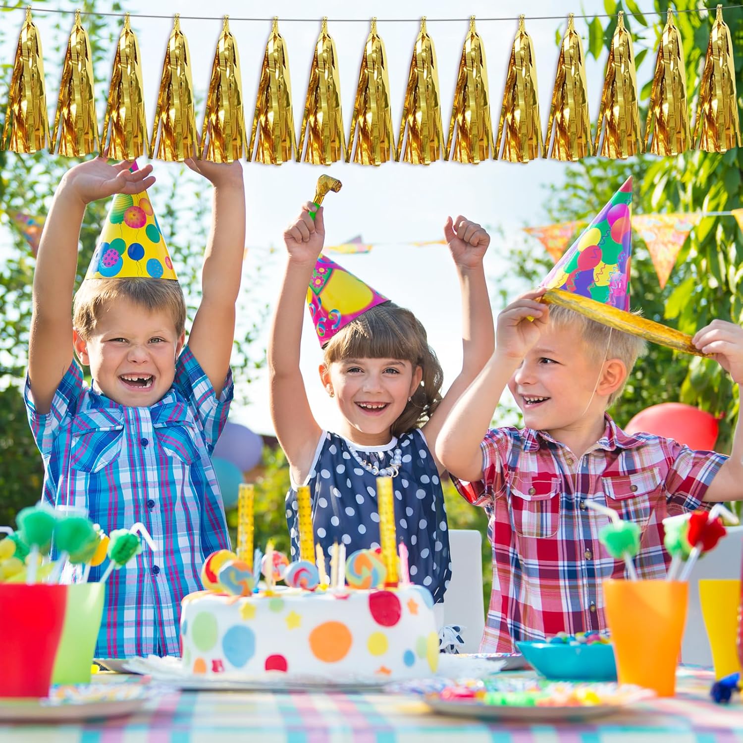 - 【Gold Party Supplies Set】: The total length of the gold birthday tassels banner is 26.2 feet, divided into 4 strips, each 6.5 feet long. Each banner contains 15 tassels, and each tassel measures 14 inches, for birthday decorations many occasions, and so on