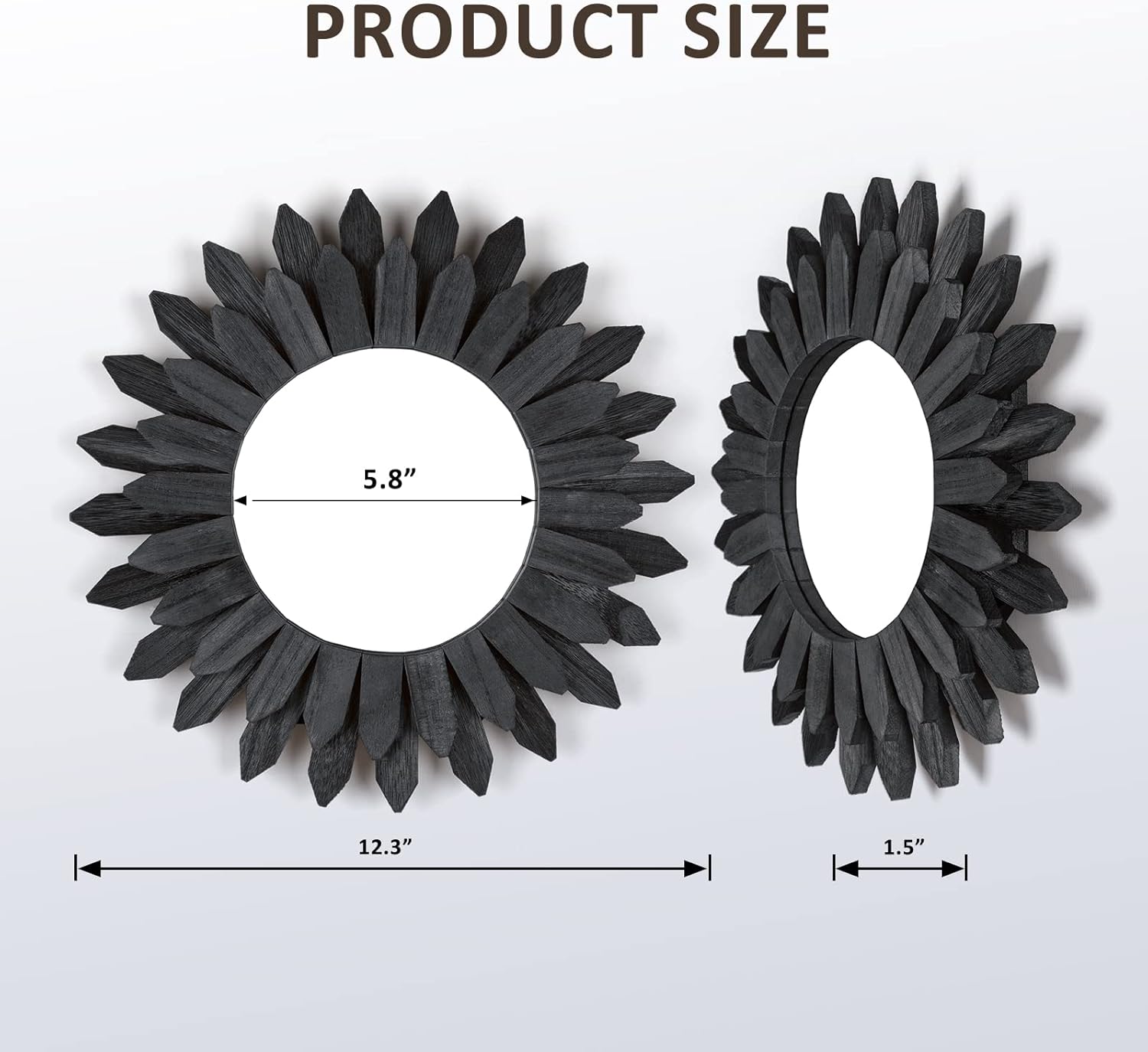 Honiway Boho Wall Decor Mirrors for Wall 2 Pack 12 inch Wood Decorative Mirror for Room Decor Rustic Farmhouse Mirror for Bedroom Bathroom Living Room Kitchen Black