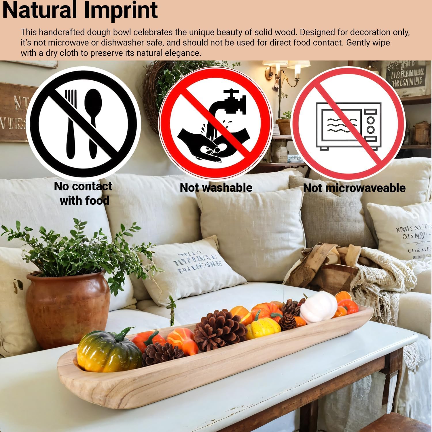 - 【SIZE】There are three sizes to choose from, approximately L: 40*6*2.7 Inch (L*W*H); M: 30*6*2.7 Inch (L*W*H); S: 22.7*6*2.7 Inch (L*W*H). Practical wooden dough bowls for decor and not for direct food contact. Each wooden dough bowl is unique, so no two bowls are the same.