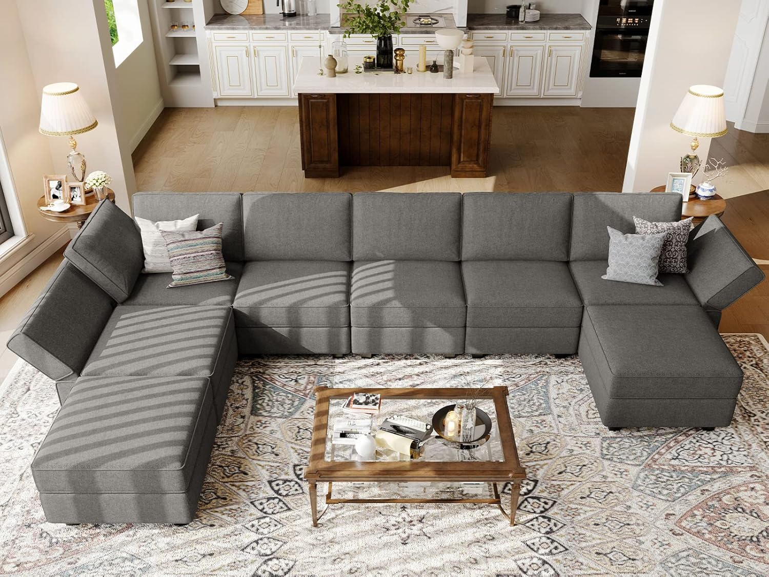 - Interchangeable Side: Armrests/Backrests of our oversized modular sleeper can be interchangeable attached with every sides of our Seat/Ottoman. You can change the U shaped couch into L shaped couch or sofa bed